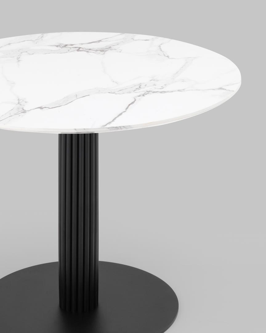 Стол обеденный Stem D90 мрамор, столешница МДФ, ножка металлическая черная