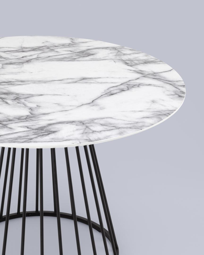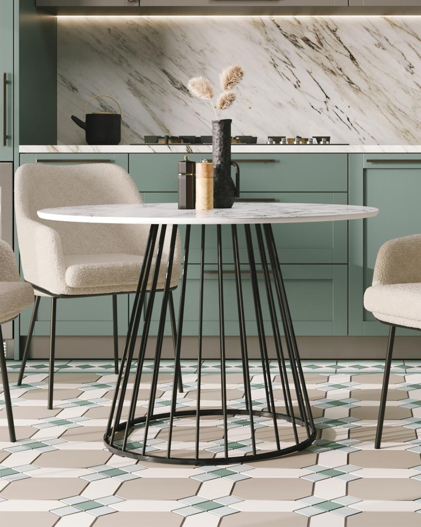 Стол обеденный Ливерпуль 110*110 белый мрамор черная ножка