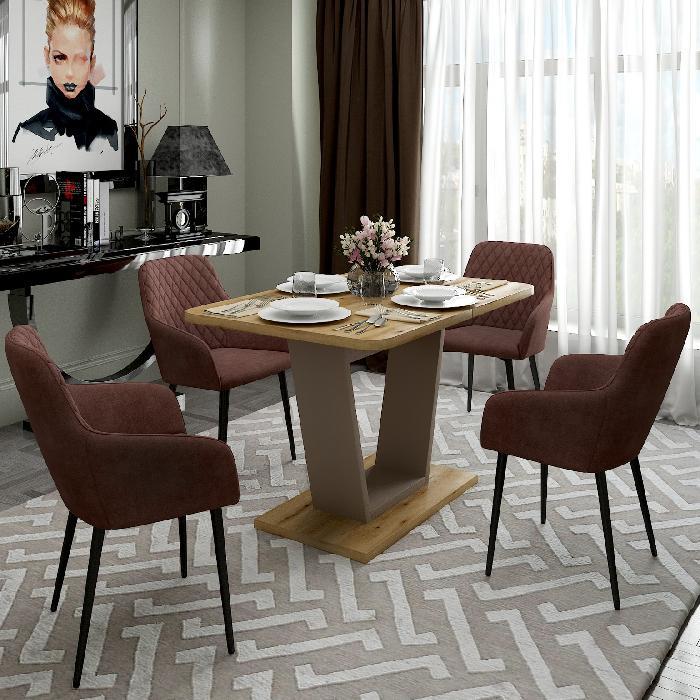 Невероятно красивый обеденный стол VERONA сделает стильной любую кухню. V-образная опора визуально расширяет пространство и является одним из основных мебельных трендов. Раздвижной механизм позволяет увеличить поверхность столешницы на 40 см, таким образом из компактного семейного стол превращается в место для приема гостей. Конструкция лишена острых углов, поэтому модель максимально безопасна в эксплуатации.
