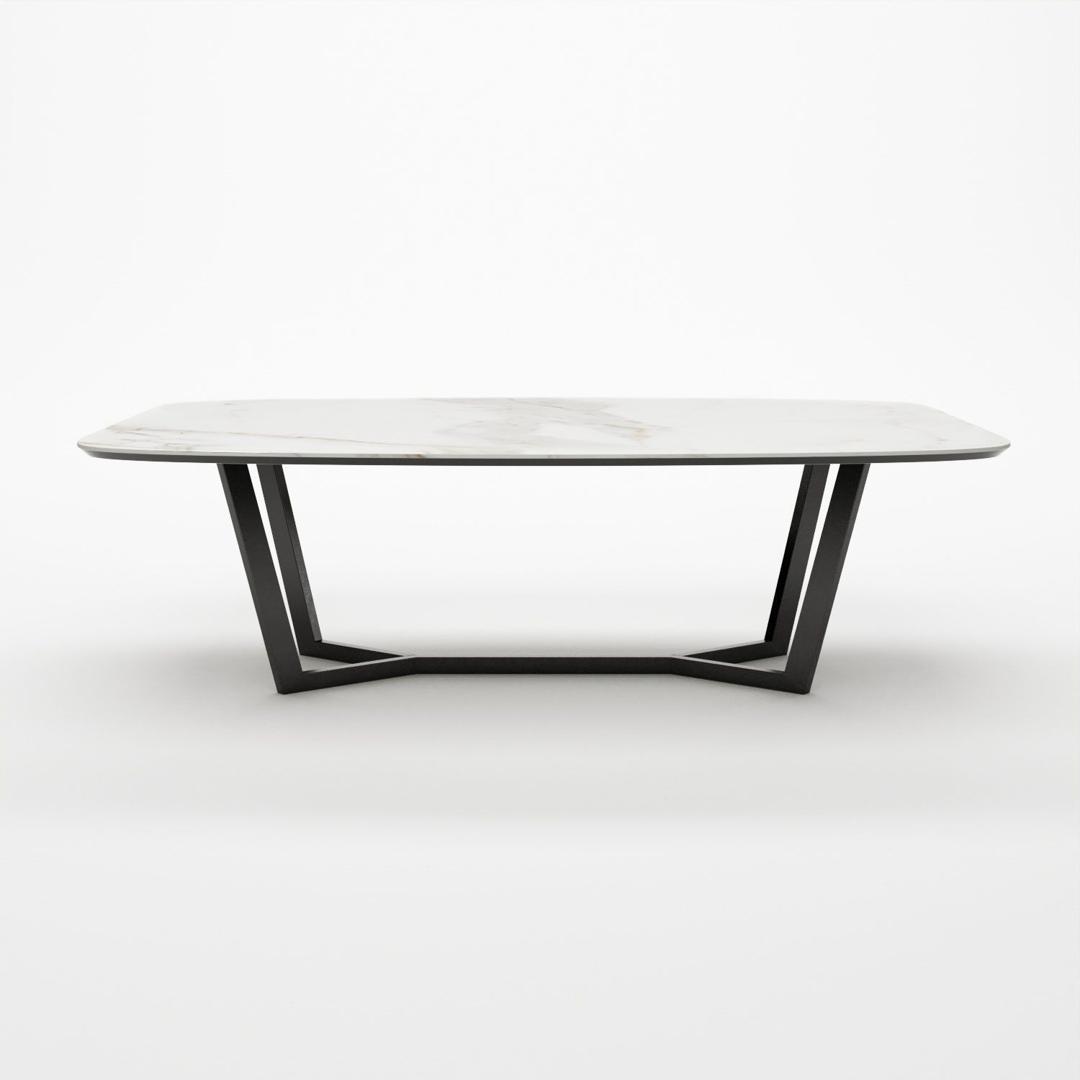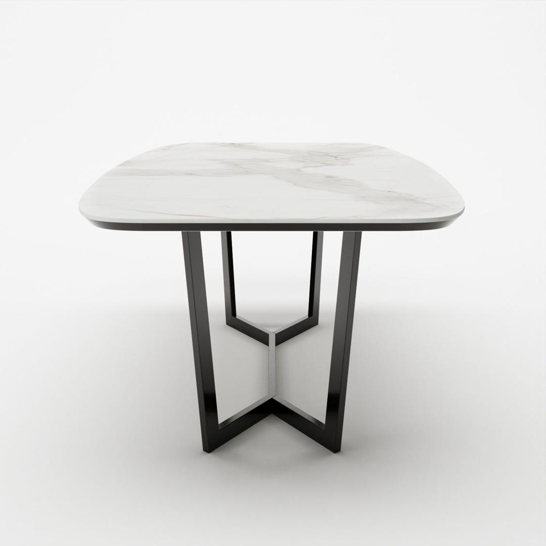 Овальный стол BENZ - отличается своей дизайнерской опорой и изысканной керамической столешницей. Керамическое покрытие стола не боится влаги, устойчиво к перепадам температур, на нем можно резать продукты без использования кухонной доски. Рисунок каждой столешницы уникален. Белая с серо-бежевыми прожилками. В хаотичных узорах можно найти разнообразные формы, либо воспринимать их как абстракции. За данным столом легко поместится от 6 до 8 человек. Опора привлекает своей оригинальностью. Также она сделана из стали - это долговечный и крепкий материал.
