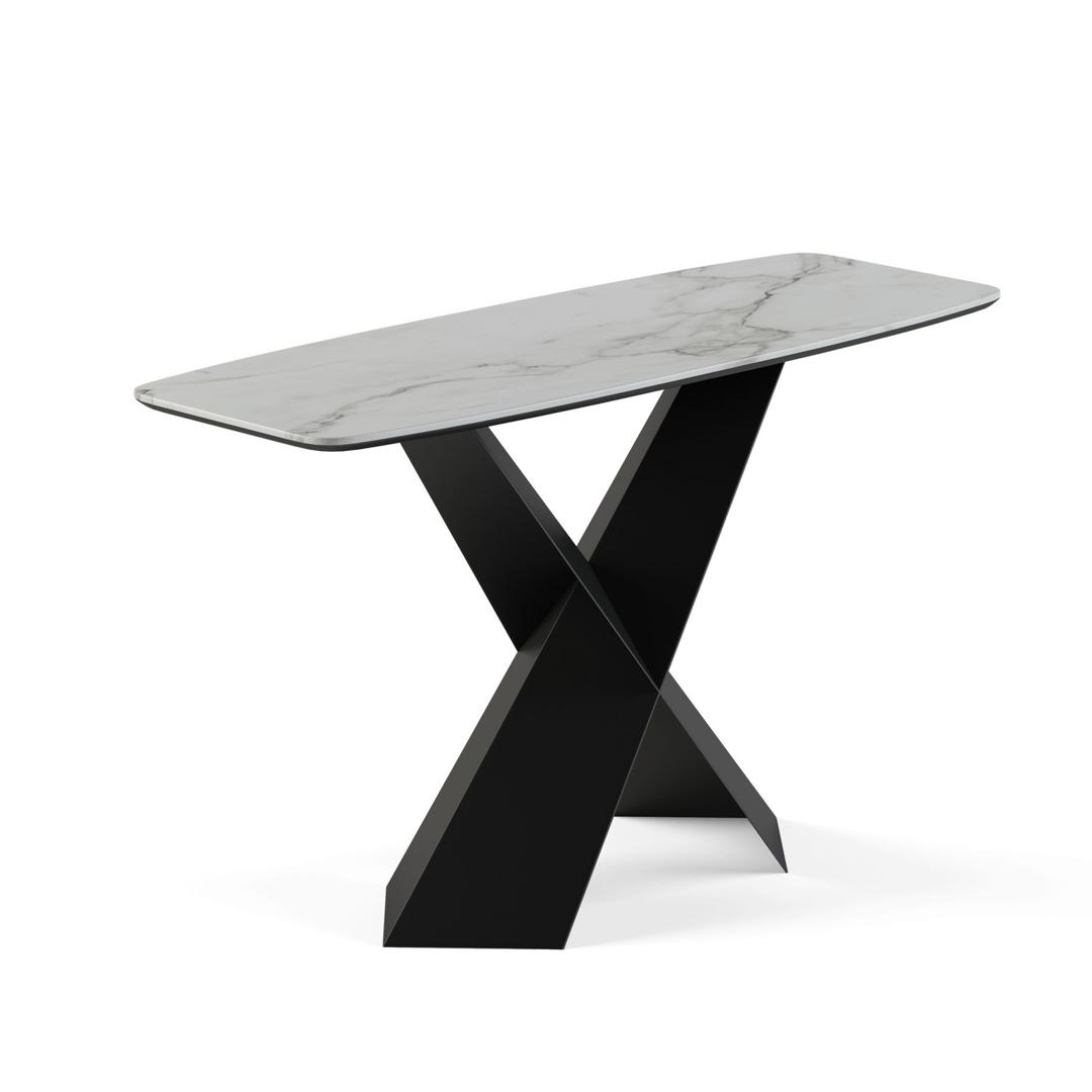 Консоль Tyler выглядит смело и оригинально. Черные металлические ножки являются центральным элементом, притягивают внимание своей необычной изогнутой формой и четкой геометрией. При этом опоры обеспечивают непревзойденную устойчивость. Столешница из керамики устойчива к перепадам температуры и химическому воздействию. Её легко чистить, она очень гигиенична, так как не впитывает жидкости и не выделяет вредных веществ. Рекомендуем использовать салфетки и подставки для посуды, чтобы на дольше сохранить идеальный внешний вид столешницы. Любые загрязнения необходимо протирать мягкой тряпкой и не использовать абразивные чистящие средства! Опоры сделаны из металла – крепкий и надежный материал. Тщательная проверка качества изделий осуществляется на всех этапах производства: от подбора материалов и комплектующих до проверки готового изделия перед отправкой.