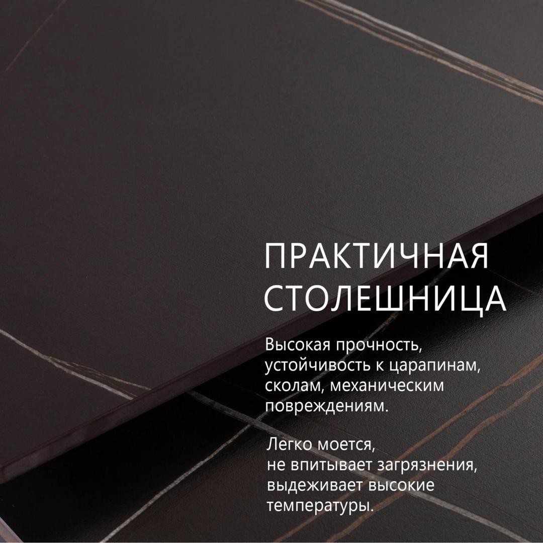 Стол с керамической столешницей «Malibu» представляет собой изысканное и функциональное обеденное место для вашего дома. Поверхность столешницы, выполненная из керамики, обеспечивает прочность, легкость в уходе и устойчивость к царапинам и температурным изменениям. Стильное металлическое основание дарит стабильность и надежность, дополняя современный дизайн стола. Данный стол идеально подходит для семейных обедов и встреч с друзьями, создавая уютную и стильную обстановку в вашем доме. Столешница модели «Malibu» может быть как компактной по площади так и просторной благодаря наличию механизма трансформации. Сама керамическая столешница может быть выполнена в различных цветовых решениях, это подарит возможность лаконично интегрировать в модель в конкретный интерьер. h3Каркас/h3 Надежный металлический каркас стола может быть окрашен в один из цветов на выбор: черный муар / серый муар / белый муар методом порошковой покраски Опоры модели притягивают внимание своей необычной формой и четкой геометрией. Они гармонично вписываются в общую концепцию дизайна модели, подчеркивают ее основательность и монументальность. h3Столешница/h3 Столешница, выполненная из матовой керамической плиты толщиной 11 мм имеет ряд преимуществ: прочность: керамические столешницы обладают высокой прочностью и устойчивы к царапинам, сколам и механическим повреждениям. Они могут служить долгое время без видимых следов износа. легкость в уходе: керамическая поверхность легко моется и мало чувствительна к пятнам от пищи, жирных и кислотных веществ. это делает уход за столешницей простым и удобным. устойчивость к температурным изменениям: керамические столешницы не портятся от высоких температур, поэтому на них можно ставить горячую посуду без опасения порчи поверхности. возможность выбора дизайна: керамические столешницы доступны в разнообразных цветах, текстурах и оттенках, что позволяет подобрать оптимальный вариант для любого интерьера. гигиеничность: керамическая поверхность не впитывает запахи, бактерии, и другие микроорганизмы, что делает ее более гигиеничной в использовании. Рекомендуем использовать салфетки и подставки для посуды, чтобы на дольше сохранить идеальный внешний вид столешницы. Любые загрязнения необходимо протирать мягкой тряпкой и не использовать абразивные чистящие средства! h3Механизм трансформации/h3 Стол Malibu оснащен механизмом трансформации выдвижения торцевых вставок на газлифтах, перемещающихся по направляющим. Данный механизм позволяет увеличить размер столешницы на 60 см (по 30 см на каждую сторону). Распределенная нагрузка на механизм - до 100 кг. Распределенная нагрузка на выдвижную часть - до 15 кг.