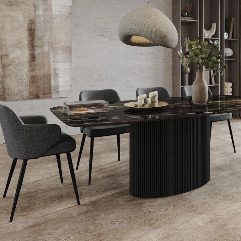 Стол Nolan — это воплощение стиля и изысканности. Он имеет овальную столешницу, изготовленную из керамики и шпона, а также металлическое основание. Чёрная металлическая опора придаёт столу сдержанный и элегантный вид, что делает его идеальным дополнением для различных интерьеров, особенно в современном и индустриальном стиле. Столешница из керамики привносит нотки натуральности и тепла, создавая уютную атмосферу в помещении. Стол Nolan гармонично сочетает в себе современные и природные элементы, что позволяет ему легко вписаться в любой интерьер.