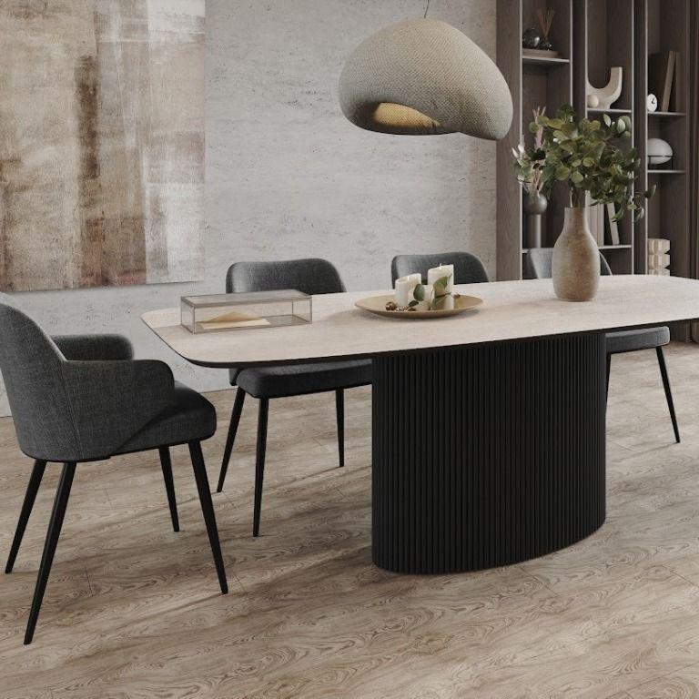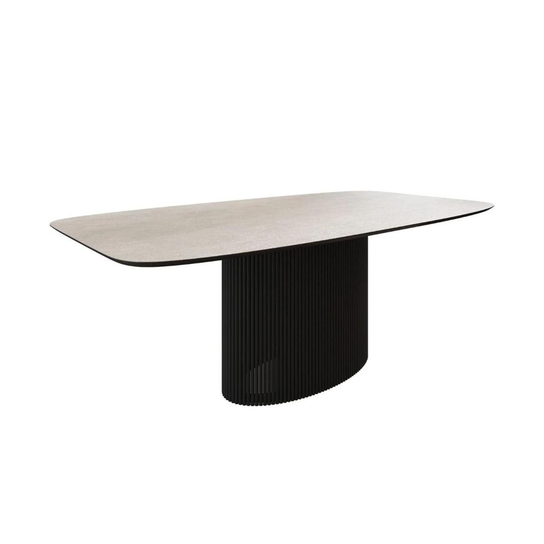 Стол Nolan — это воплощение стиля и изысканности. Он имеет овальную столешницу, изготовленную из керамики и шпона, а также металлическое основание. Чёрная металлическая опора придаёт столу сдержанный и элегантный вид, что делает его идеальным дополнением для различных интерьеров, особенно в современном и индустриальном стиле. Столешница из керамики привносит нотки натуральности и тепла, создавая уютную атмосферу в помещении. Стол Nolan гармонично сочетает в себе современные и природные элементы, что позволяет ему легко вписаться в любой интерьер.