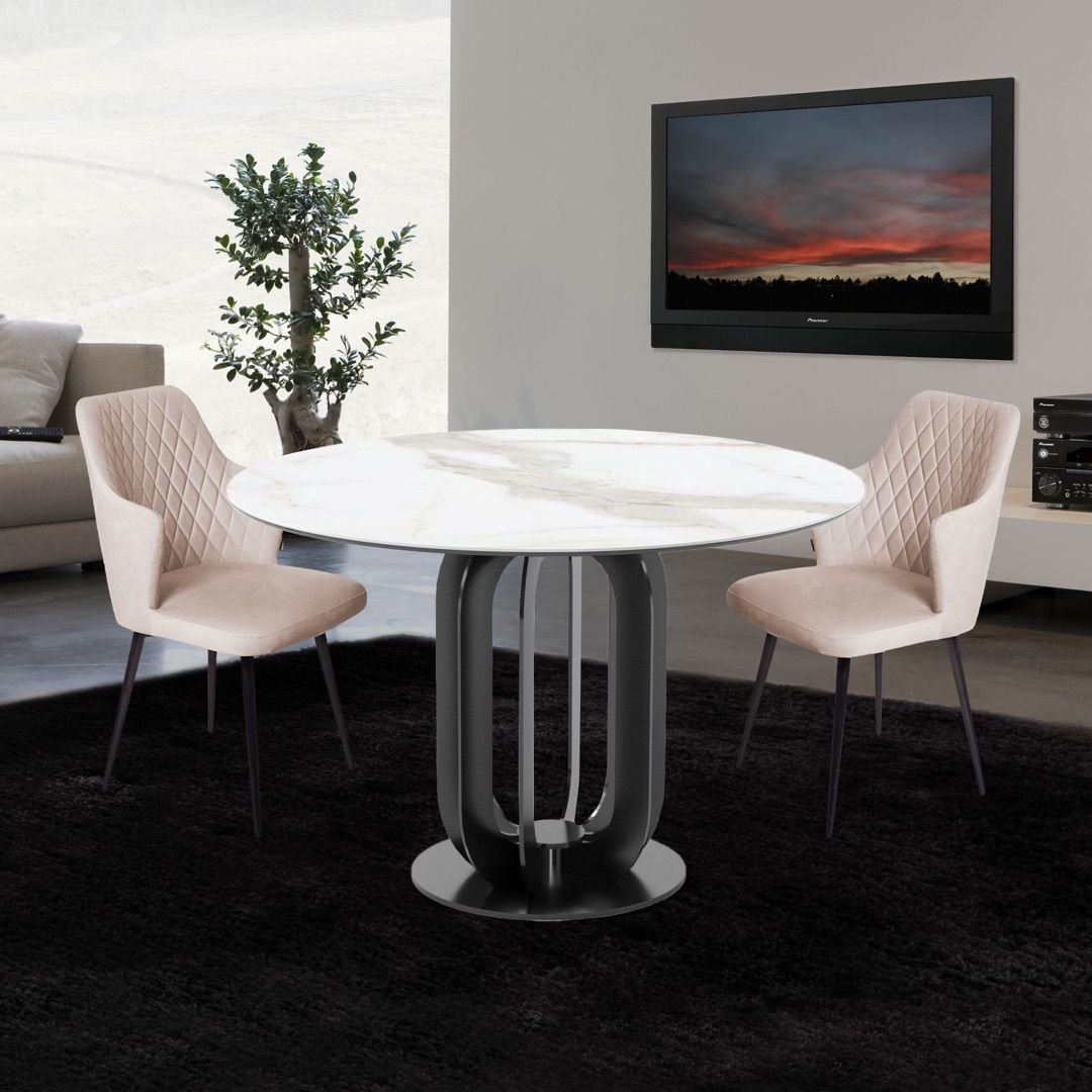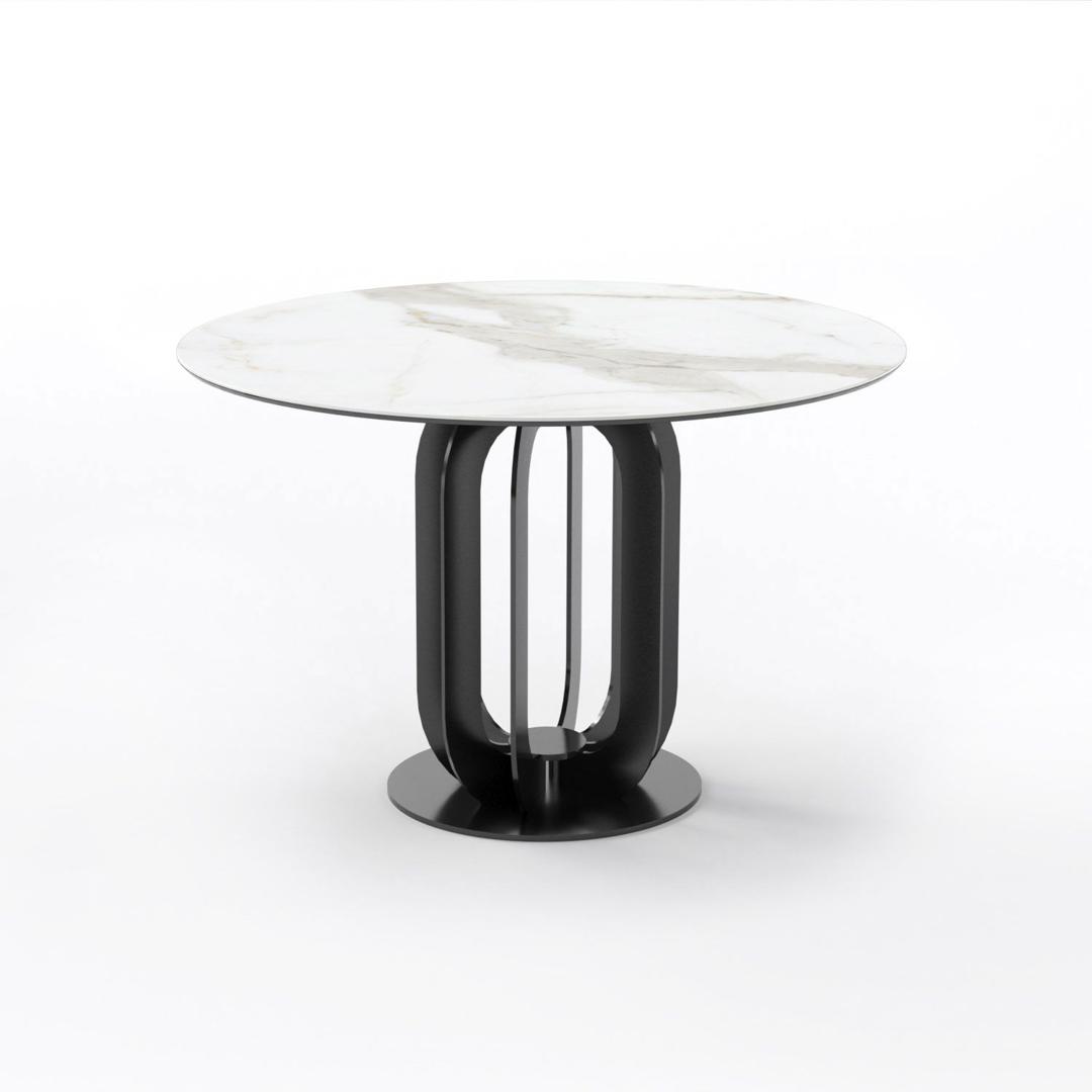 Стол Castro - это элегантное и функциональное решение для Вашего интерьера. Он предлагает удобное пространство для работы, обедов или встреч с друзьями. Стол Castro идеально сочетается с вашим интерьером и создает гармоничную атмосферу. Стильный и практичный, стол Castro станет прекрасным дополнением к Вашему домашнему офису, столовой или гостиной. h3Столешница/h3 Столешница стола Castro имеет идеальную круглую форму, выполнена из МДФ толщиной 19 мм и покрыта керамикой 6мм. Это придает столу изысканный вид и приятную тактильность. h3Опора/h3 Опора стола выполнена из прочного металла в черном цвете. В центре опоры проходит труба для устойчивости, обеспечивая стабильность и надежность.