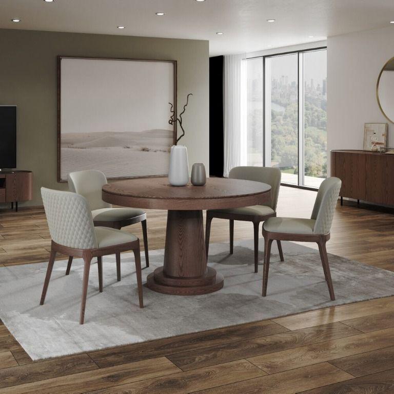 Стол с круглой столешницей, раскладывающийся от 1100 до 1500 мм, представляет собой элегантное и удобное решение для обеденной зоны. Столешница выполнена из шпона толщиной 1 мм, что придает ей стильный и современный вид. Благодаря возможности раскладывания, этот стол идеально подойдет как для небольших, так и для просторных помещений, позволяя удобно разместить большее количество гостей. Опора стола выполнена из МДФ с натуральным шпоном, что придает конструкции прочность и устойчивость. Стол сочетает в себе функциональность, качество материалов и стильный дизайн, что делает его идеальным выбором для обеденной зоны вашего дома или кафе. Он станет уютным и привлекательным акцентом в любом интерьере.