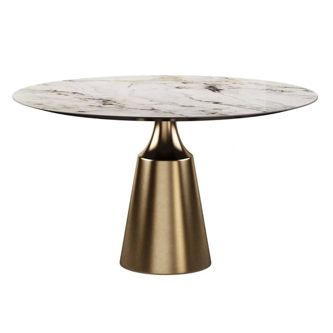 Стол Top concept Стол круглый Lucas 120, керамика глянцевая, белая / опора золото арт. 22747