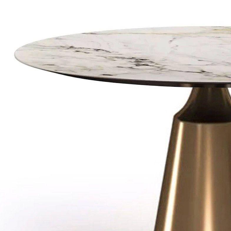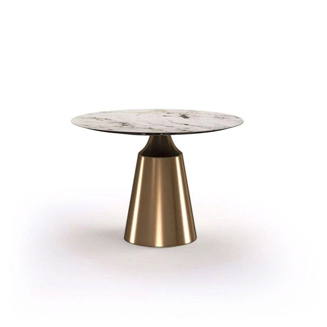 Коллекция обеденных столов Lucas - одна из самых популярных. Включает в себя различные варианты и формы обеденных столов, для персонализации своей собственной дизайнерской столовой. Основание состоит из центрального конусного ствола, выполненного из нержавеющей стали, массивный внешний вид которого облегчается металлическим покрытием нитрид титана цвет золото и соединением с узкой и отступающей столешницей, как бы напоминающей длинную элегантную шею, поддерживающую столешницу. Коллекция включает круглый, овальный, прямоугольный керамический стол Lucas с матовым или глянцевым покрытием и версию со столешницей из шпона. Столешница выполнена из МДФ 19 мм, керамика толщиной 6 мм. Ее органический и натуральный внешний вид подчеркивает путь бренда к экологичному дизайну, который создается из натуральных материалов с использованием методов с низким энергопотреблением.