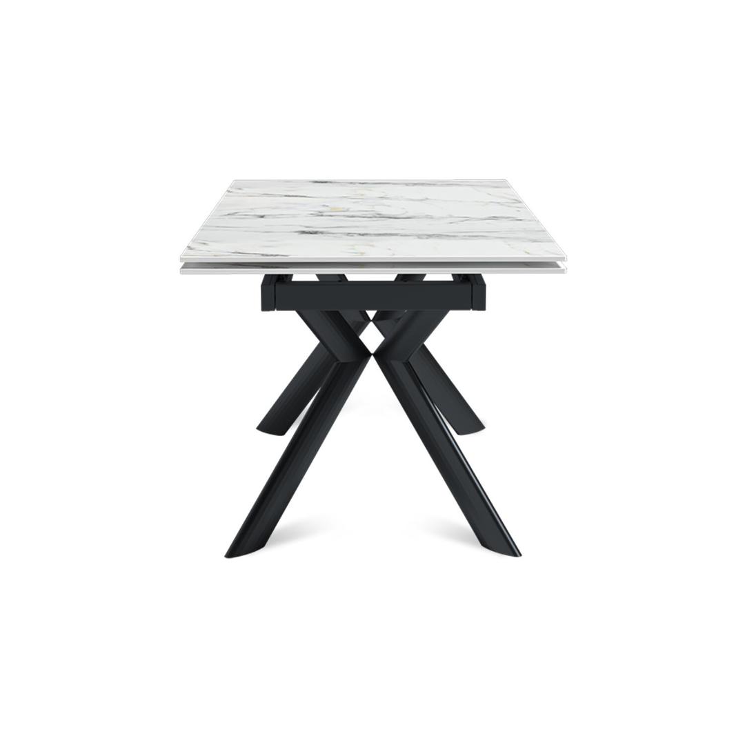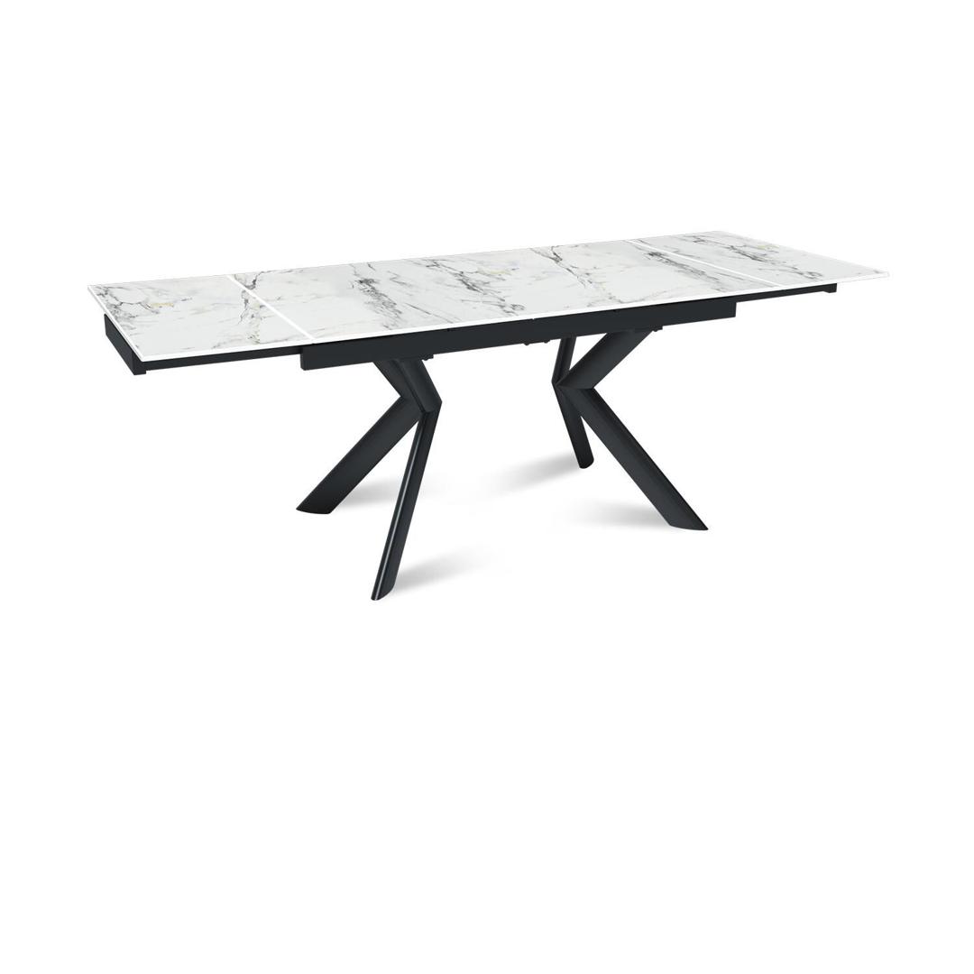 «Бридж» — это стол, в котором продумано всё. Динамичное Х-образное основание делает его визуально легким и устойчивым. Керамическая столешница с рисунком натурального камня не боится горячего, царапин и пятен. А когда нужно принять гостей, раздвижной механизм увеличивает поверхность, создавая простор для общения и уюта. h3Столешница/h3 Столешница выполнена из высокопрочной керамики толщиной 12 мм, по твердости не уступающей натуральному камню. Материал не боится царапин, сколов и высоких температур, а его непористая структура предотвращает впитывание влаги, запахов и размножение бактерий. Широкая палитра матовых и глянцевых покрытий позволяет подобрать идеальный вариант под любой интерьер. h3Механизм трансформации/h3 Стол «Бридж» оснащен двусторонним торцевым механизмом, который обеспечивает плавное и бесшумное выдвижение боковых вставок по направляющим. Механизм позволяет гибко увеличить длину стола с базовых 140 см до 180 см (одна вставка) или до 220 см (обе вставки по 40 см каждая). Конструкция выдерживает нагрузку: до 50 кг на основную часть и до 15 кг на каждую выдвижную секцию. h3Опора и каркас/h3 Цельнометаллический каркас с эллиптическими ножками Х-образной формы сочетает визуальную легкость с абсолютной надежностью. Конструкция освобождает место для ног и гарантирует устойчивость даже в разложенном виде. Регулировочные винты помогают идеально выровнять стол на любом полу. h3Уход и гарантия/h3 Чтобы керамическое покрытие оставалось безупречным, рекомендуем использовать подставки под горячее. Для очистки достаточно мягкой влажной ткани. Мы уверены в качестве нашего стола и подтверждаем это гарантией 18 месяцев с момента покупки. h3Производство на заказ/h3 span class="strong-text"Столешница:/span Глянцевая или матовая бронированная керамика 12 мм. Доступна в палитре натуральных оттенков и текстур, имитирующих камень.br/ span class="strong-text"Размер столешницы:/spanbr/ — Бридж 120/180×80 см: Компактный стол для кухонь и столовых. В собранном виде комфортно для 4 человек, в разложенном — для 6-8.br/ — Бридж 140/220×85 см: Универсальный вариант для семьи и гостей. Обеспечивает комфорт для 4-6 человек ежедневно и легко превращается в большой праздничный стол.br/ — Бридж 160/240×90 см: Идеальное решение для просторных помещений и общественных зон.br/ span class="strong-text"Опора:/span На выбор три классических оттенка — чёрный муар, белый муар, серый муар. Подберите идеальную комбинацию для вашей обеденной зоны. Все детали для персонального заказа уточняйте у менеджера.