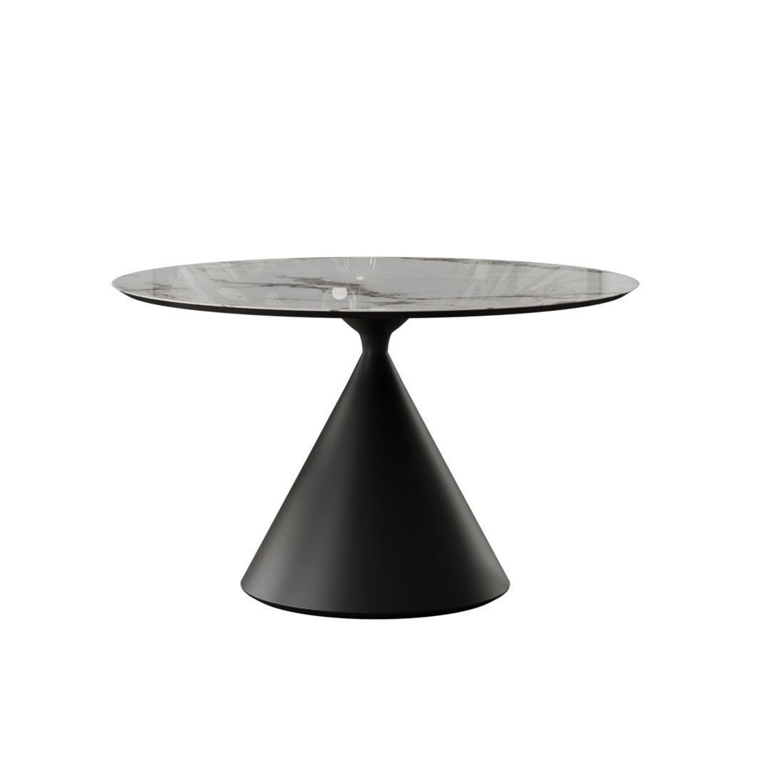 Круглый стол AXIS идеально подходит для создания уютной обеденной зоны в вашем доме или ресторане. Его дизайн и функциональность обеспечивают комфортное пространство для обеденной зоны и встреч с друзьями. Благодаря надежным материалам и качественной конструкции, этот стол будет служить вам долгое время и радовать вас своей эстетической привлекательностью. Стол с круглой столешницей AXIS не раскладывающийся, МДФ 40 мм с керамикой 6 мм. Опора стола выполнена в форме конуса и изготовлена из прочного металла. Цвет опоры - черный, что придает столу современный и стильный вид. Черный цвет добавляет элегантности и характера столу, при этом легко сочетается с различными интерьерными стилями.