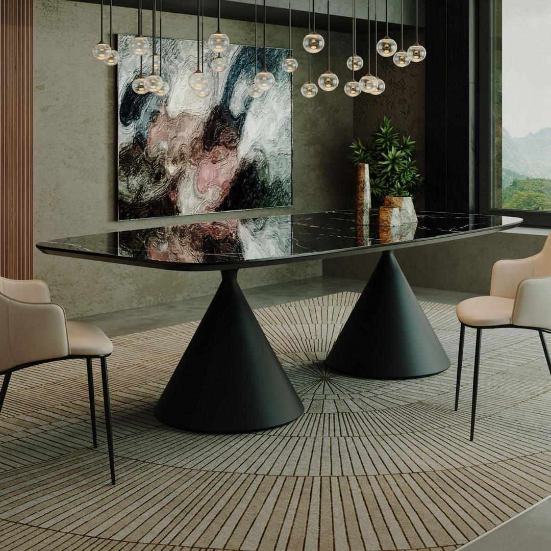 Овальный стол AXIS идеально подходит для создания уютной обеденной зоны в вашем доме или ресторане. Его дизайн и функциональность обеспечивают комфортное пространство для обеденной зоны и встреч с друзьями. Благодаря надежным материалам и качественной конструкции, этот стол будет служить вам долгое время и радовать вас своей эстетической привлекательностью. Стол с овальной столешницей не раскладывающийся, МДФ 19 мм с керамикой 6 мм. Опоры стола выполнены в форме конуса и изготовлена из прочного металла. Цвет опоры - черный, что придает столу современный и стильный вид. Черный цвет добавляет элегантности и характера столу, при этом легко сочетается с различными интерьерными стилями.