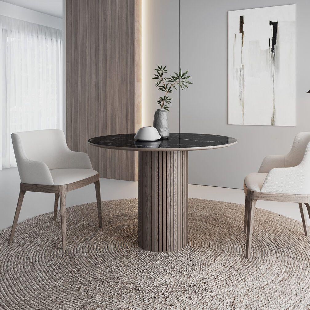 Стол Denver – стильное и практичное решение для вашего интерьера. Он сочетает в себе изысканный дизайн, функциональность и долговечность – идеальный выбор для тех, кто ценит комфорт и стиль. h3Столешница/h3 Стол Denver оснащен круглой нераскладывающейся столешницей, выполненной из глянцевой керамики толщиной 6 мм, что обеспечивает прочность и устойчивость к царапинам и пятнам. h3Опора/h3 Опора стола выполнена из МДФ, покрытого натуральным шпоном, что добавляет изделию элегантности и гармонично вписывается в современные и классические интерьеры.
