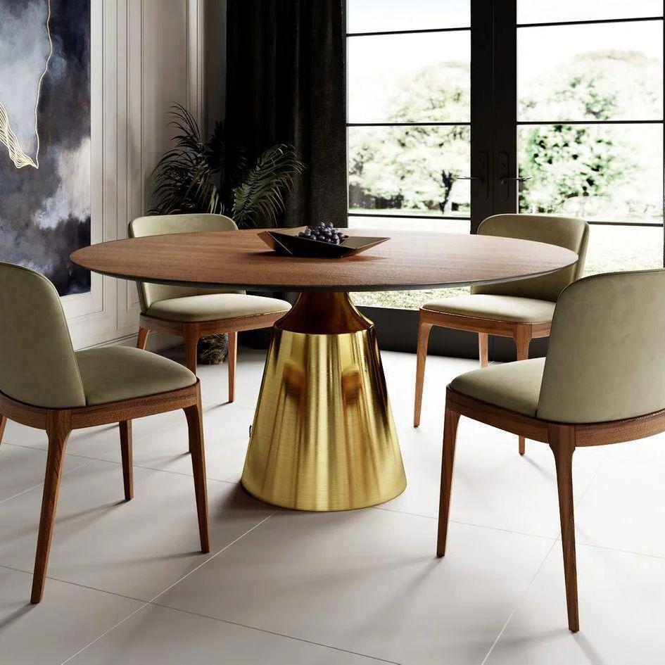 Характеристики - 120, 120, 75, Сталь, Орех, Шпон, LUCAS, Матовое, Круглый, Золото, Современный стиль,Модерн,Хай-тек, Нет, Гостиная,Столовая,Кухня, Да, обеденный, 1 Ножка, Condor, 48, 2, 73,5/63/63,130/130/3,5