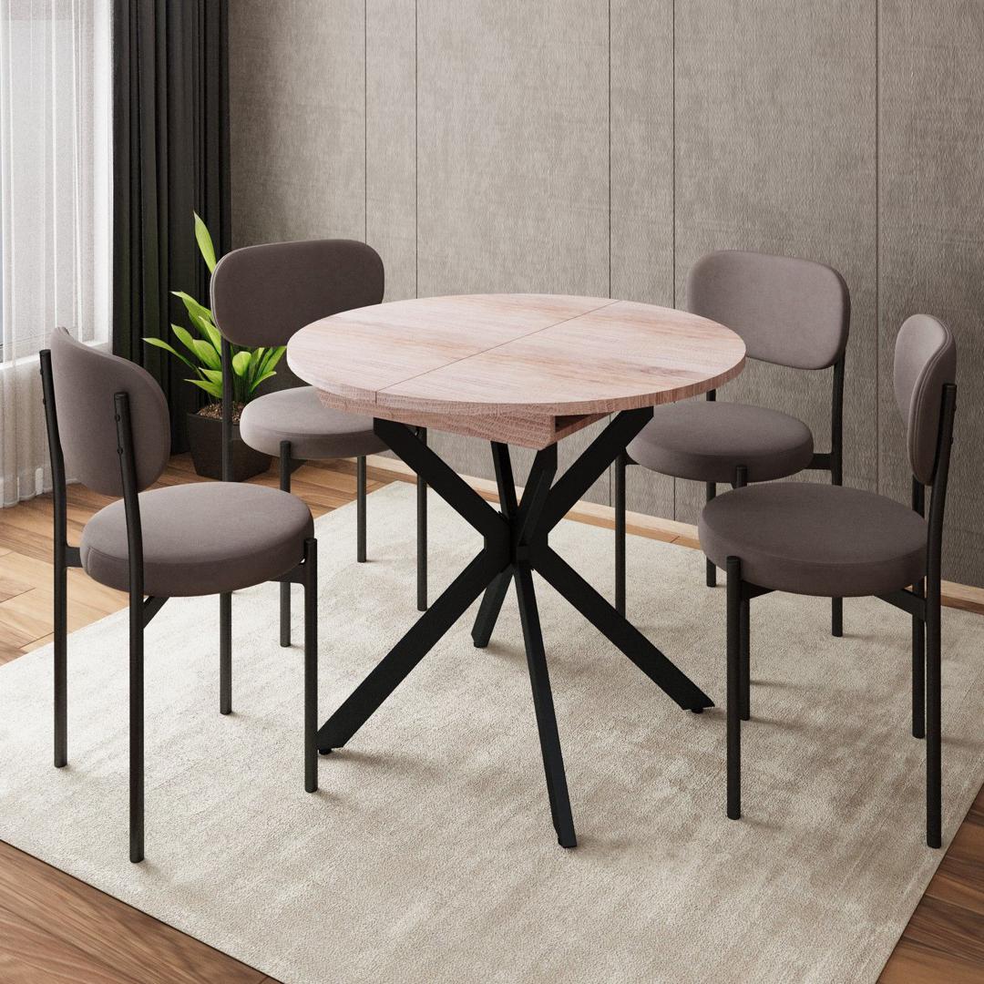 Раздвижной обеденный стол Твист разработан для малогабаритных кухонь и квартир-студий: в сложенном виде компактный и не занимает пространство, при необходимости легко раскладывается для гостей. Особая форма опоры позволяет беспрепятственно задвигать стулья под стол, делая посадку удобной. Модель выглядит актуально благодаря чистым линиям, спокойной текстуре столешницы «под дерево» и выразительной Х-образной опоре, которая и дала название линейке. h3Столешница/h3 Столешница выполнена из ЛДСП толщиной 22 мм. Материал устойчив к бытовым царапинам, обладает высокой ударопрочностью, легкий в уходе, долговечный и практичный. Форма столешницы с плавными скруглениями обеспечивает комфорт и безопасность при каждом использовании. Никаких выступающих углов — только продуманная геометрия, которая заботится о вас. h3Механизм трансформации/h3 Трансформация стола построена на синхронном принципе: обе половины столешницы расходятся одновременно, сохраняя идеальную геометрию. Центральная вставка-«бабочка» шириной 30 см плотно фиксируется между ними, исключая люфт и перепады высоты. В разложенном виде стол выглядит монолитно, а механизм не доставляет хлопот при каждой сборке. Вставка повторяет цвет и фактуру столешницы, благодаря этому конструкция выглядит монолитно: переход от столешницы к опорам визуально сглажен, а общий вид остается максимально аккуратным и продуманным. h3Опоры/h3 Металлические опоры стола окрашены методом порошковой окраски. Это обеспечивает высокую стойкость покрытия: оно не боится коррозии, сколов и царапин, сохраняя безупречный вид долгие годы. Чтобы исключить деформацию и продлить срок службы, предусмотрено дополнительное усиление опор в точках изгиба. Возможность регулировки опор по высоте компенсирует перепады и обеспечивает идеальную устойчивость на любом напольном покрытии. h3Гарантия/h3 Продленная гарантия 36 месяцев на металлокаркас: дополнительная защита вашей покупки и подтверждение качества. h3Модификации стола/h3 Модели и размеры: круглый 90(120)х90 или прямоугольный 100(130)х80; Столешница (лдсп): дуб эндгрейн / цемент светлый / камень тёмный; Опора: черный муар или белый муар.
