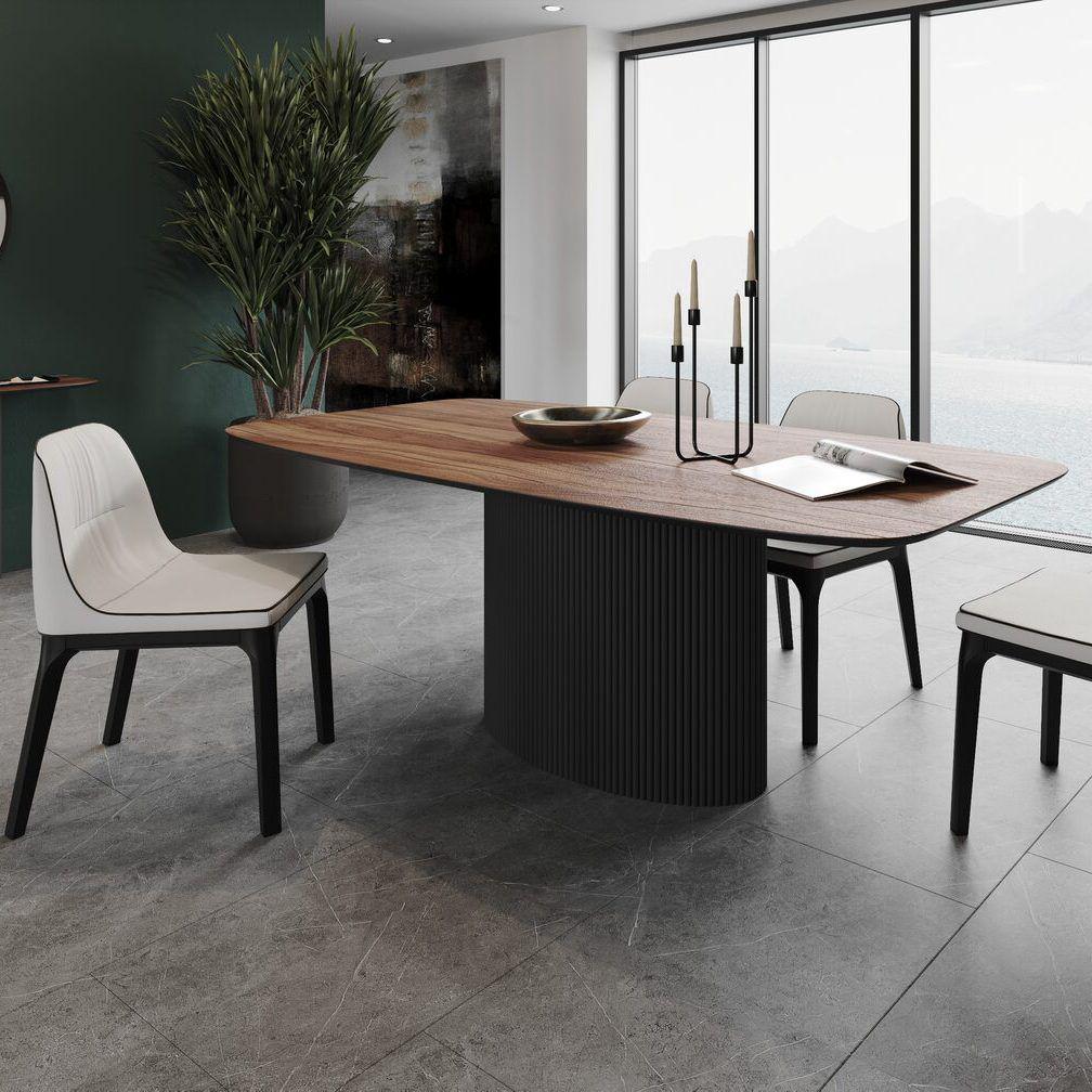 Стол Nolan — это воплощение стиля и изысканности. Он имеет овальную столешницу, изготовленную из шпона, а также металлическое основание. Чёрная металлическая опора придаёт столу сдержанный и элегантный вид, что делает его идеальным дополнением для различных интерьеров, особенно в современном и индустриальном стиле. Столешница из керамики привносит нотки натуральности и тепла, создавая уютную атмосферу в помещении. Стол Nolan гармонично сочетает в себе современные и природные элементы, что позволяет ему легко вписаться в любой интерьер.