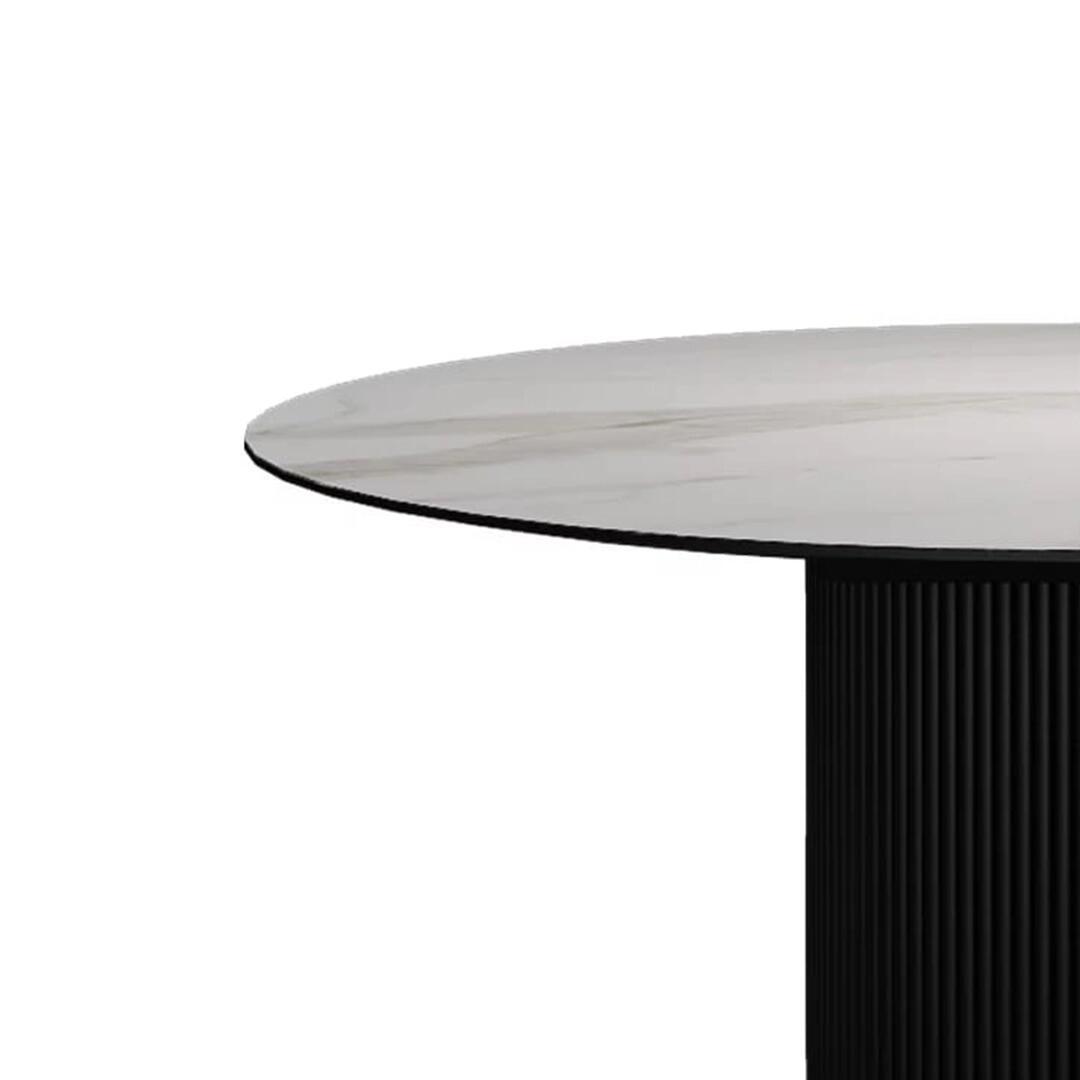 Стол «Нолан» — стильная и изысканная модель с круглой столешницей из керамики, основанием из металла. Стол «Нолан» с металлической опорой в черном цвете и столешницей из керамики звучит элегантно и современно. Черная металлическая опора придает столу сдержанный и стильный вид, что делает его хорошим выбором для различных интерьеров, особенно в современных и индустриальных стилях. В целом, такой дизайн стола "Нолан" сочетает в себе современные и натуральные элементы, что позволяет ему органично вписаться в разнообразные интерьеры и стать стильным акцентом в комнате.