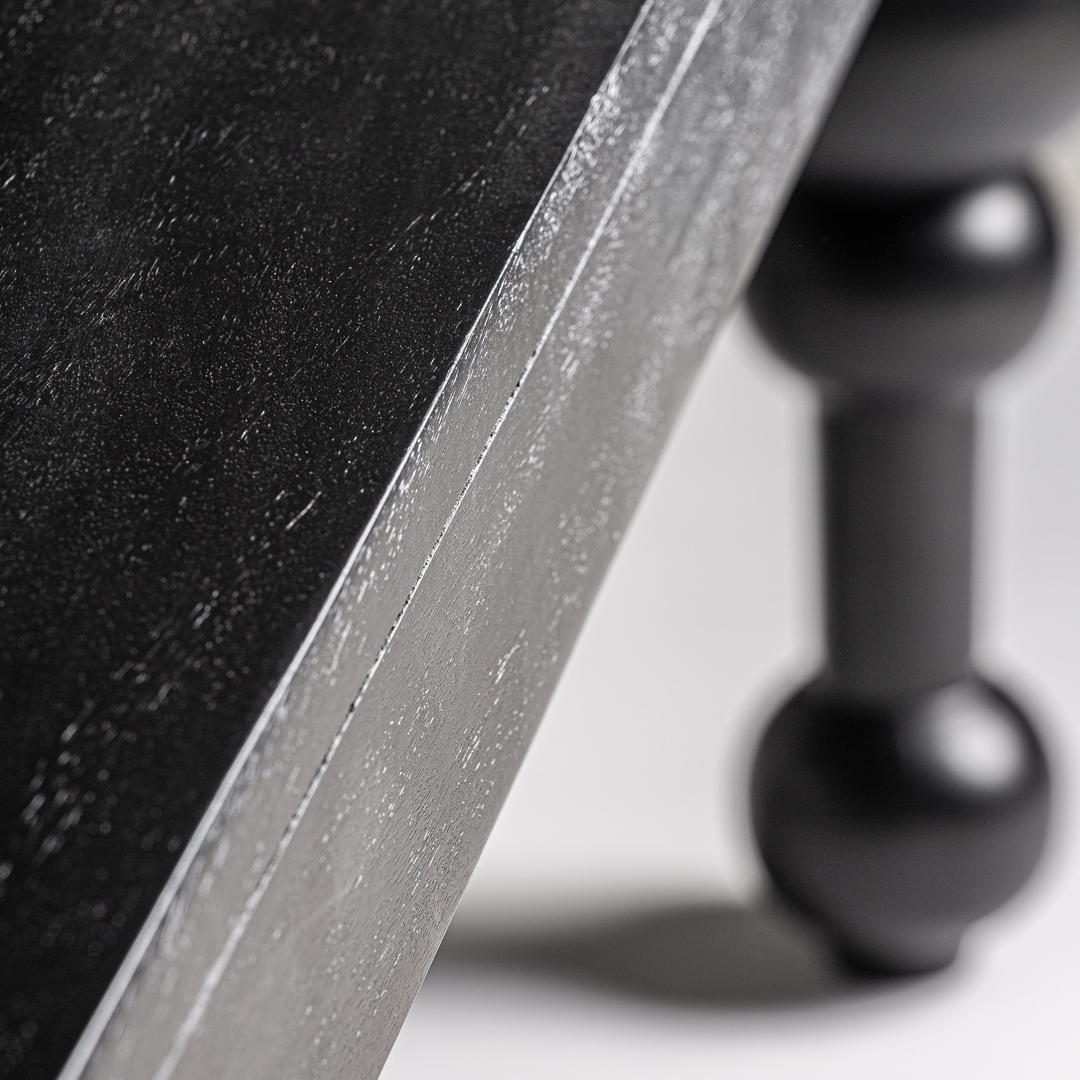 Обеденный стол Zeniva черного цвета в современном стиле. Изготовлен из дерева манго в сочетании со сталью. Съемное изделие.