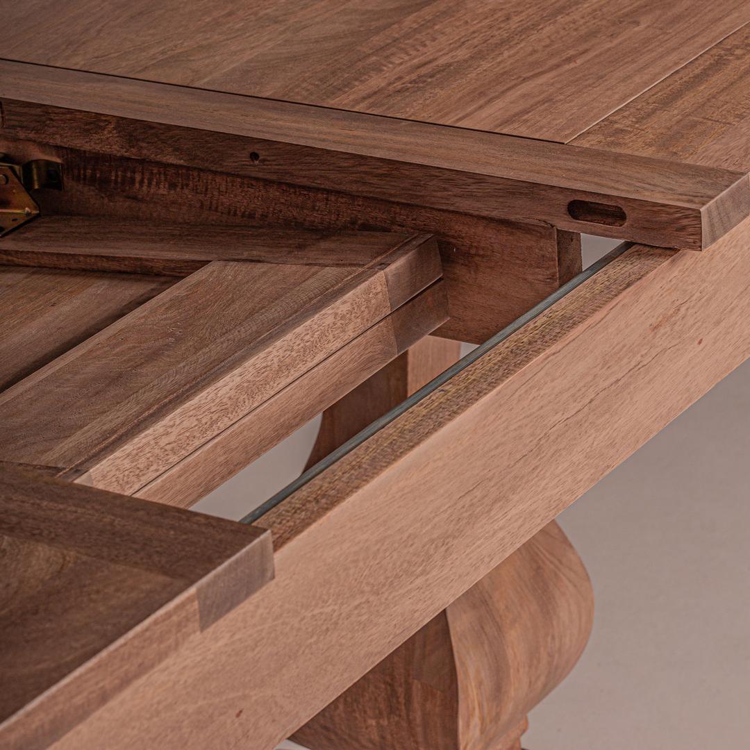 Обеденный стол Brandet, натурального цвета, в колониальном стиле. Изготовлен из дерева манго. Съемное, выдвижное изделие.