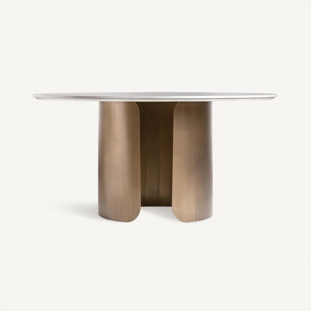 Авангардный и прочный обеденный стол Vimperk от VICAL Home выполнен из серого спеченного камня с изысканными золотыми деталями. Этот круглый обеденный стол из серого и золотого камня размером 150x150x75 см является символом современной элегантности, привнося непревзойденный стиль в вашу столовую.