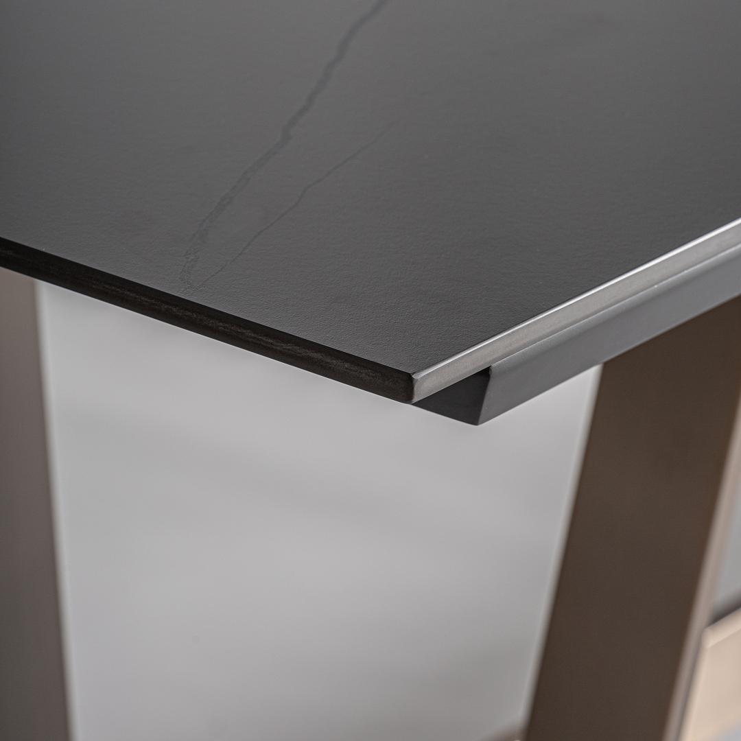 Обеденный стол Tremp, черный/золотой, стиль арт-деко. Изготовлен из камня в сочетании с нержавеющей сталью. Съемное изделие.