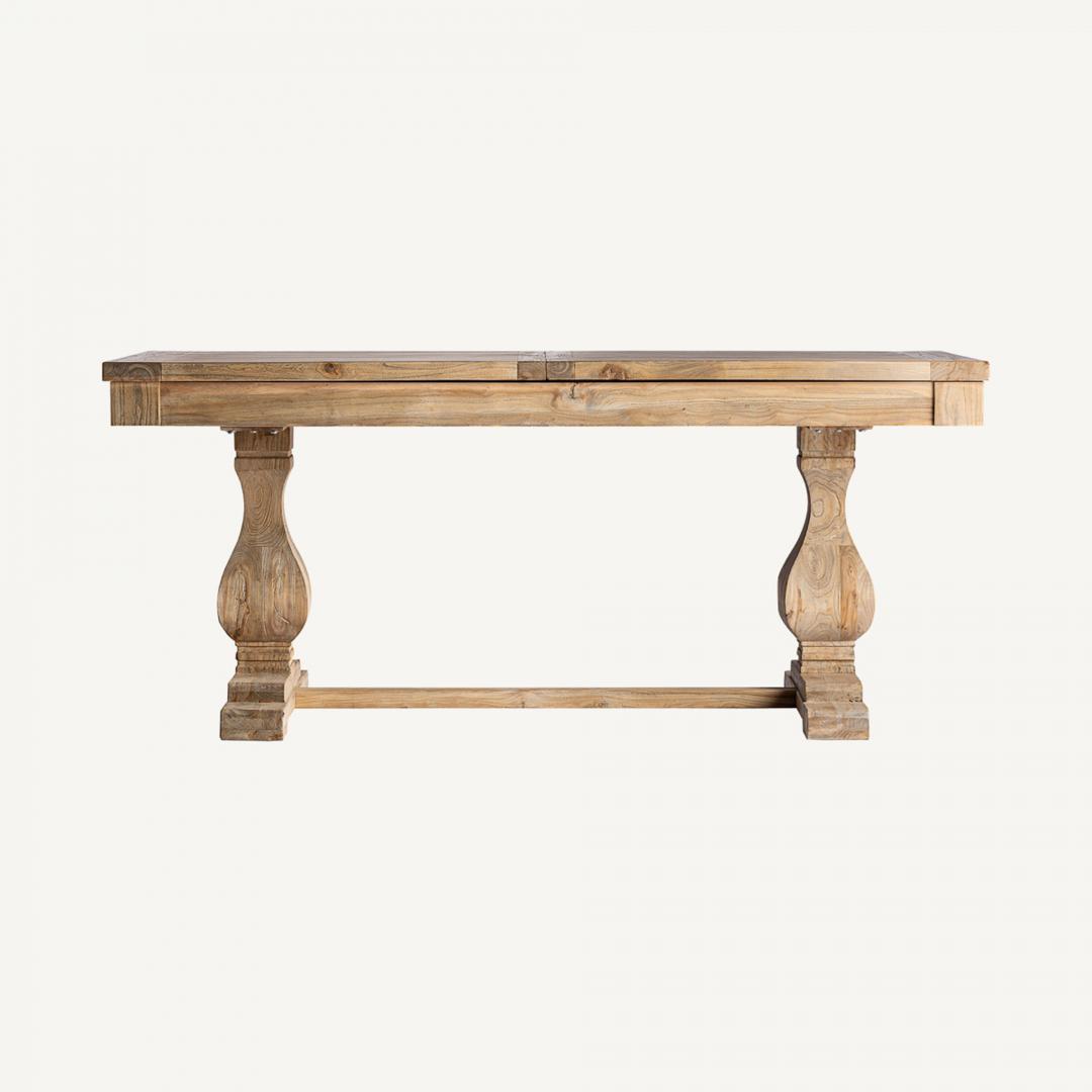 Прямоугольный раздвижной стол Berca, натуральный цвет, классический стиль. Изготовлен из переработанной древесины вяза. Съемное, выдвижное изделие.