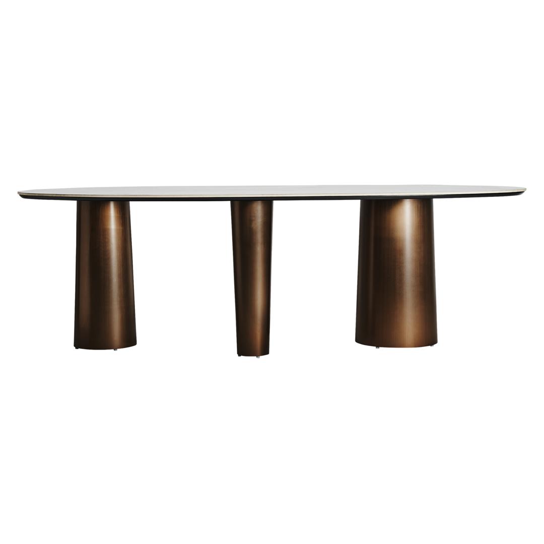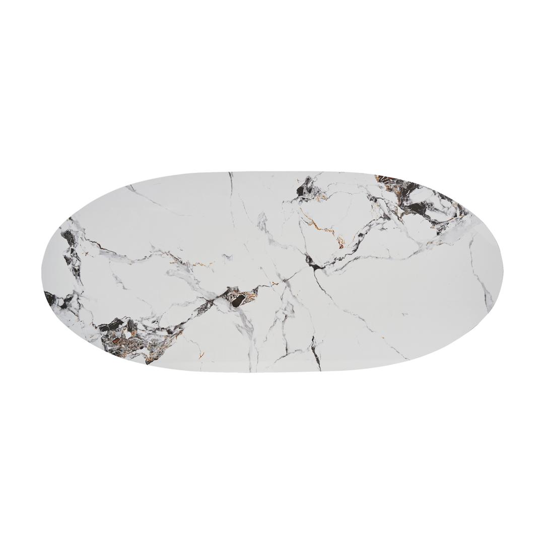 Стол обеденный LAGGAN, цвет бело-золотой, стиль арт-деко. Изготовлен из стали в сочетании с синтетическим мрамором.