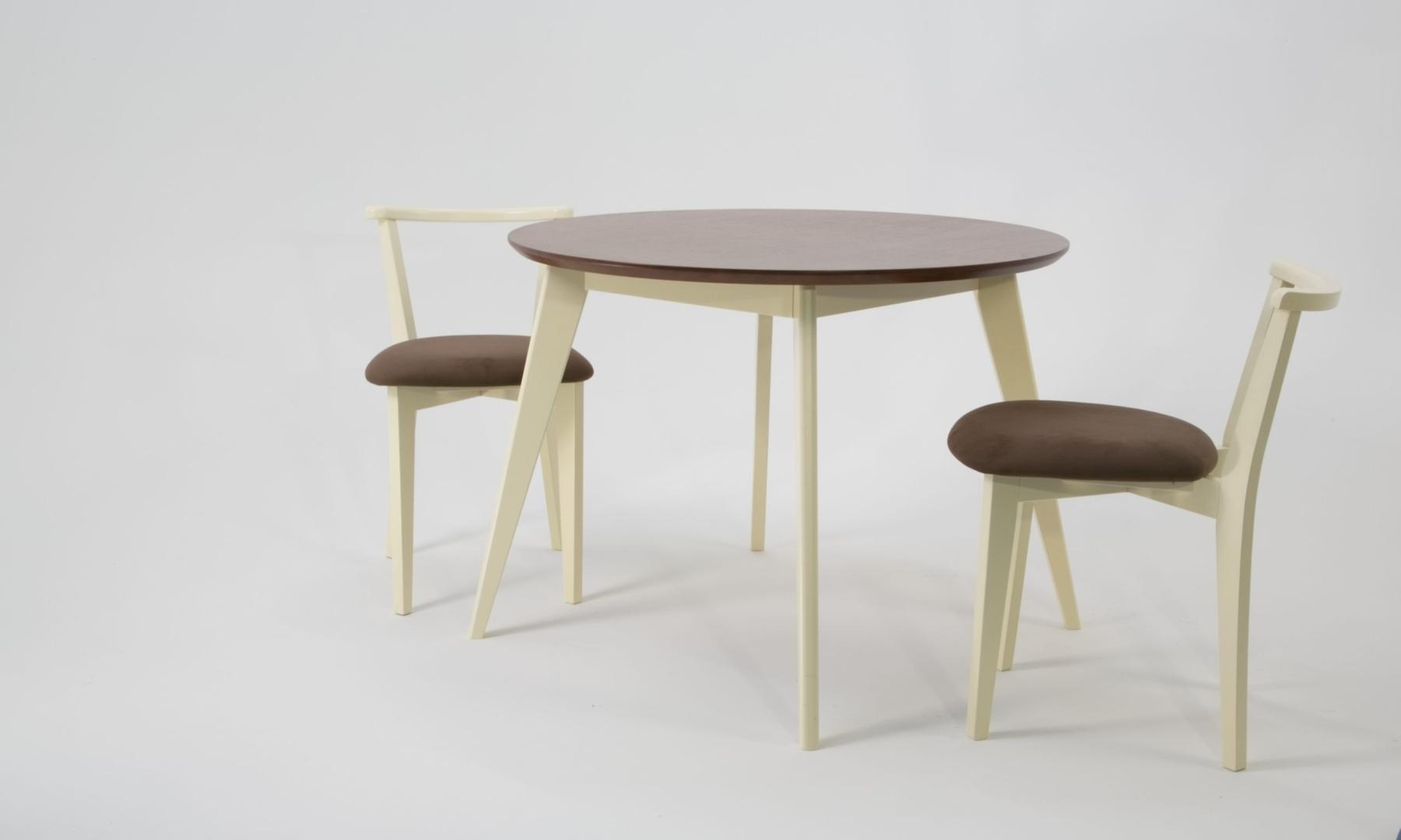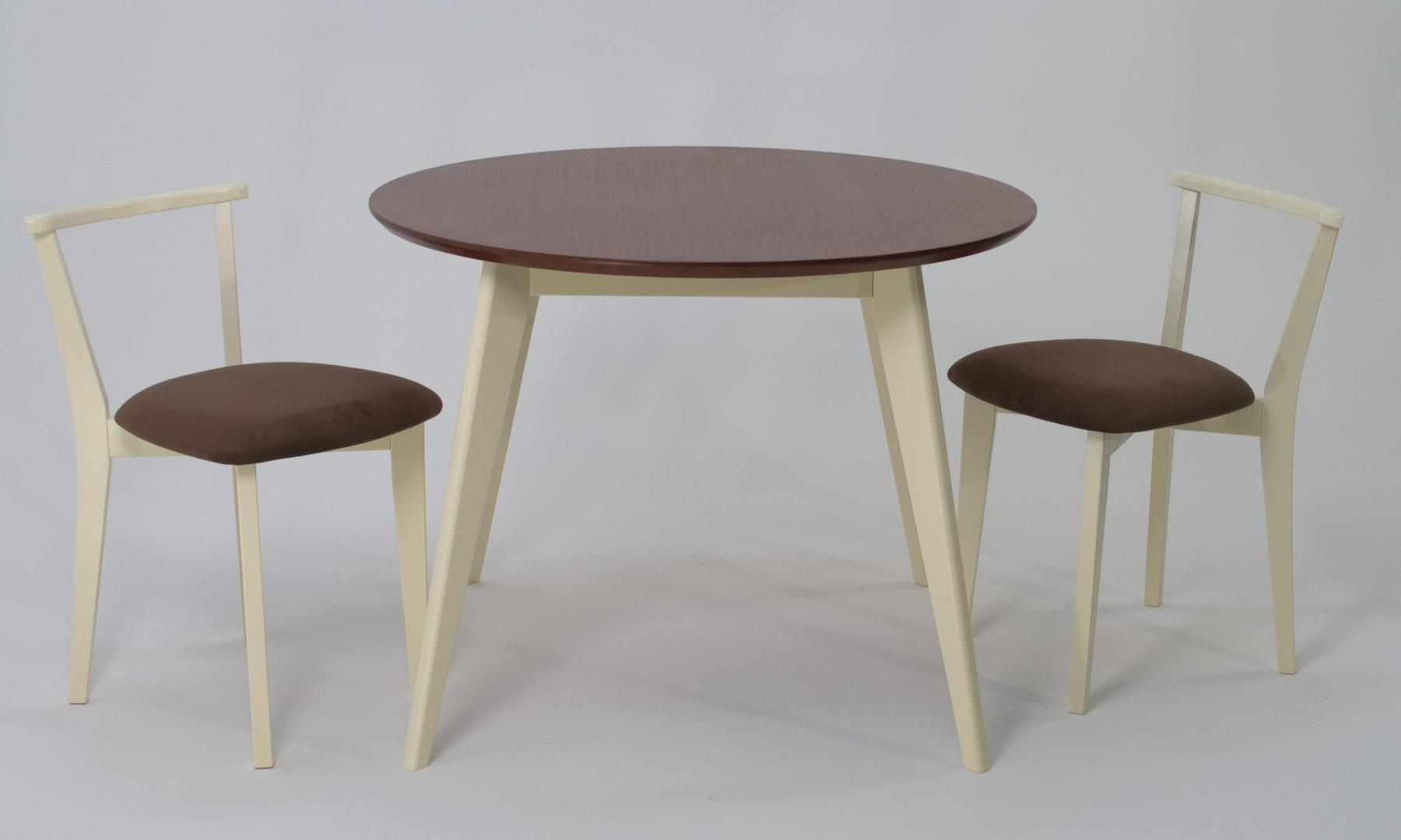 Комплект из деревянного стола Сканди на каркасе из натурального дерева и 2 стула Франк отлично подойдет к интерьеру, выдержанному в скандинавском стиле. Данный комплект станет центральным элементом в гостиной, столовой зоне, на кухне, позволив создать уютное обеденное место, где смогут собираться члены дружной семьи и их гости.У модели круглая форма столешницы. Такое решение исключит риск сколов и обеспечит безопасность, в том числе, детям.Комплект выполнен в красивой комбинации цветов - орех, слоновая кость. Сочетание изысканного дизайна и высокого качества исполнения - главная особенность комплекта.Столешница выполнена из материалов с великолепными эксплуатационными свойствами - МДФ (Материал создается на основе натуральной древесины. Практичен, надежен, имеет однородную гладкую структуру), шпон.Мебель проста в уходе - для поддержания первозданного вида достаточно использовать простую чуть влажную салфетку по мере необходимости.Состав комплекта:- стол F004103SUW- стулья R101709S04