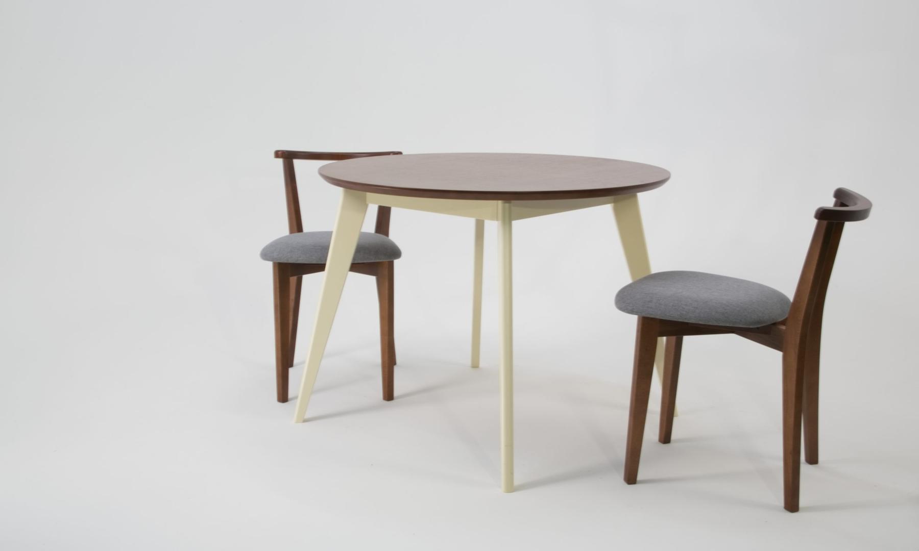 Комплект из деревянного стола Сканди на каркасе из натурального дерева и 2 стула Франк отлично подойдет к интерьеру, выдержанному в скандинавском стиле. Данный комплект станет центральным элементом в гостиной, столовой зоне, на кухне, позволив создать уютное обеденное место, где смогут собираться члены дружной семьи и их гости.У модели круглая форма столешницы. Такое решение исключит риск сколов и обеспечит безопасность, в том числе, детям.Комплект выполнен в красивой комбинации цветов - орех, слоновая кость. Сочетание изысканного дизайна и высокого качества исполнения - главная особенность комплекта.Столешница выполнена из материалов с великолепными эксплуатационными свойствами - МДФ (Материал создается на основе натуральной древесины. Практичен, надежен, имеет однородную гладкую структуру), шпон.Мебель проста в уходе - для поддержания первозданного вида достаточно использовать простую чуть влажную салфетку по мере необходимости.Состав комплекта:- стол F004103SUW- стулья R101706W01