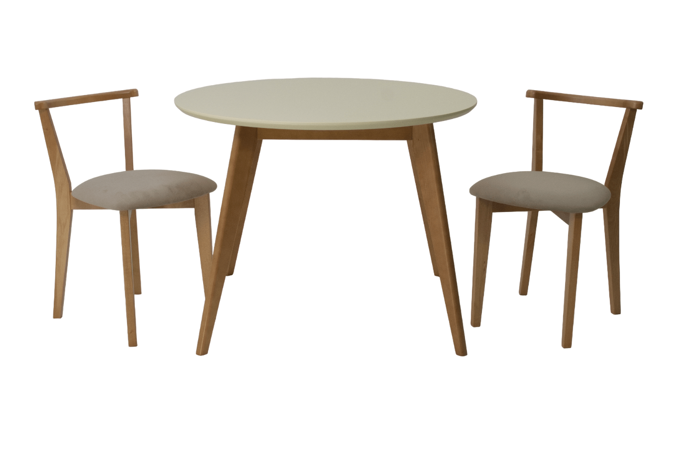 Комплект из деревянного стола Сканди на каркасе из натурального дерева и 2 стула Франк отлично подойдет к интерьеру, выдержанному в скандинавском стиле. Данный комплект станет центральным элементом в гостиной, столовой зоне, на кухне, позволив создать уютное обеденное место, где смогут собираться члены дружной семьи и их гости.У модели круглая форма столешницы. Такое решение исключит риск сколов и обеспечит безопасность, в том числе, детям.Комплект выполнен в красивой комбинации цветов - орех, слоновая кость. Сочетание изысканного дизайна и высокого качества исполнения - главная особенность комплекта.Столешница выполнена из материалов с великолепными эксплуатационными свойствами - МДФ (Материал создается на основе натуральной древесины. Практичен, надежен, имеет однородную гладкую структуру), шпон.Мебель проста в уходе - для поддержания первозданного вида достаточно использовать простую чуть влажную салфетку по мере необходимости.Состав комплекта:- стол F004102NUS- стулья R101707N02