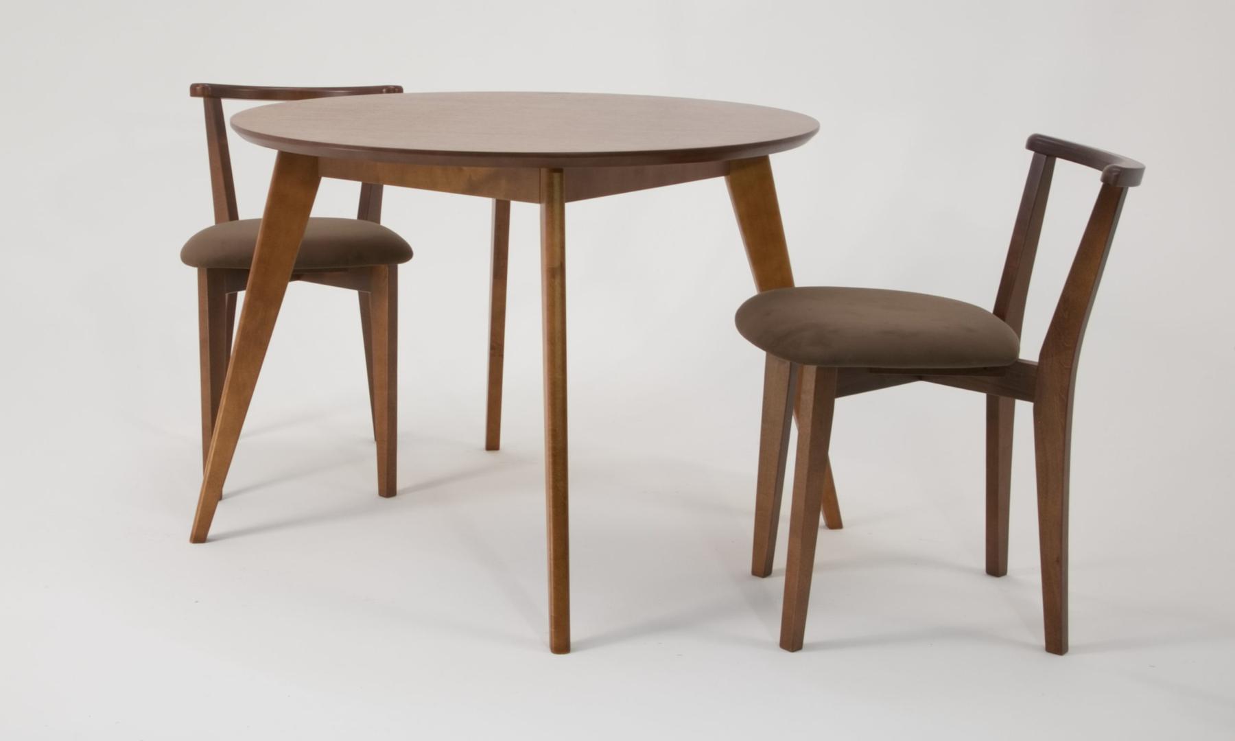 Комплект из деревянного стола Сканди на каркасе из натурального дерева и 2 стула Франк отлично подойдет к интерьеру, выдержанному в скандинавском стиле. Данный комплект станет центральным элементом в гостиной, столовой зоне, на кухне, позволив создать уютное обеденное место, где смогут собираться члены дружной семьи и их гости.У модели круглая форма столешницы. Такое решение исключит риск сколов и обеспечит безопасность, в том числе, детям.Комплект выполнен в красивом цвете - орех. Сочетание изысканного дизайна и высокого качества исполнения - главная особенность комплекта.Столешница выполнена из материалов с великолепными эксплуатационными свойствами - МДФ (Материал создается на основе натуральной древесины. Практичен, надежен, имеет однородную гладкую структуру), шпон.Мебель проста в уходе - для поддержания первозданного вида достаточно использовать простую чуть влажную салфетку по мере необходимости.Состав комплекта:- стол F004105W00- стулья R101706W04