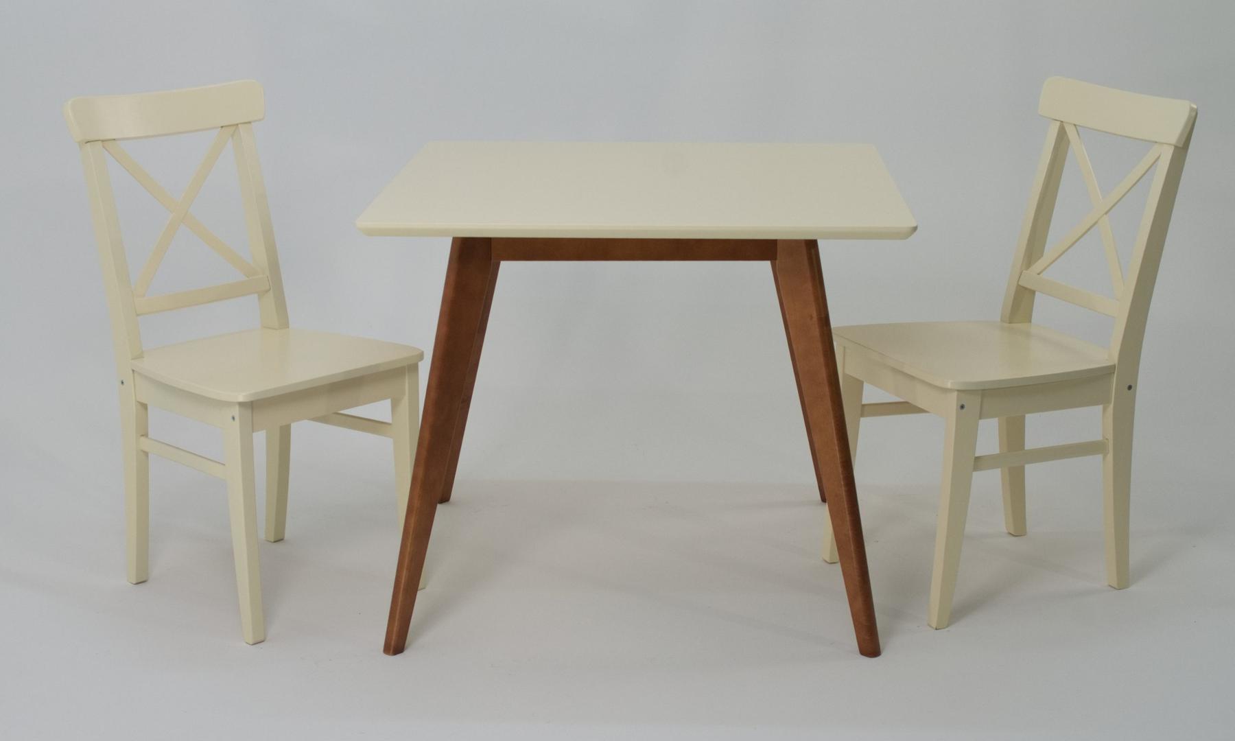 Комплект из деревянного стола Сканди на каркасе из натурального дерева и 2 стула Ингольф отлично подойдет к интерьеру, выдержанному в скандинавском стиле. Данный комплект станет центральным элементом в гостиной, столовой зоне, на кухне, позволив создать уютное обеденное место, где смогут собираться члены дружной семьи и их гости.У модели квадратная форма столешницы, со скруглением углов. Такое решение исключит риск сколов и обеспечит безопасность, в том числе, детям.Комплект выполнен в красивой комбинации цветов - орех, слоновая кость. Сочетание изысканного дизайна и высокого качества исполнения - главная особенность комплекта.Столешница выполнена из материалов с великолепными эксплуатационными свойствами - МДФ (Материал создается на основе натуральной древесины. Практичен, надежен, имеет однородную гладкую структуру), шпон.Мебель проста в уходе - для поддержания первозданного вида достаточно использовать простую чуть влажную салфетку по мере необходимости.Состав комплекта:- стол F404119WUS- стулья R100741S00
