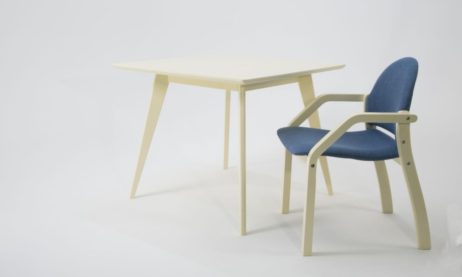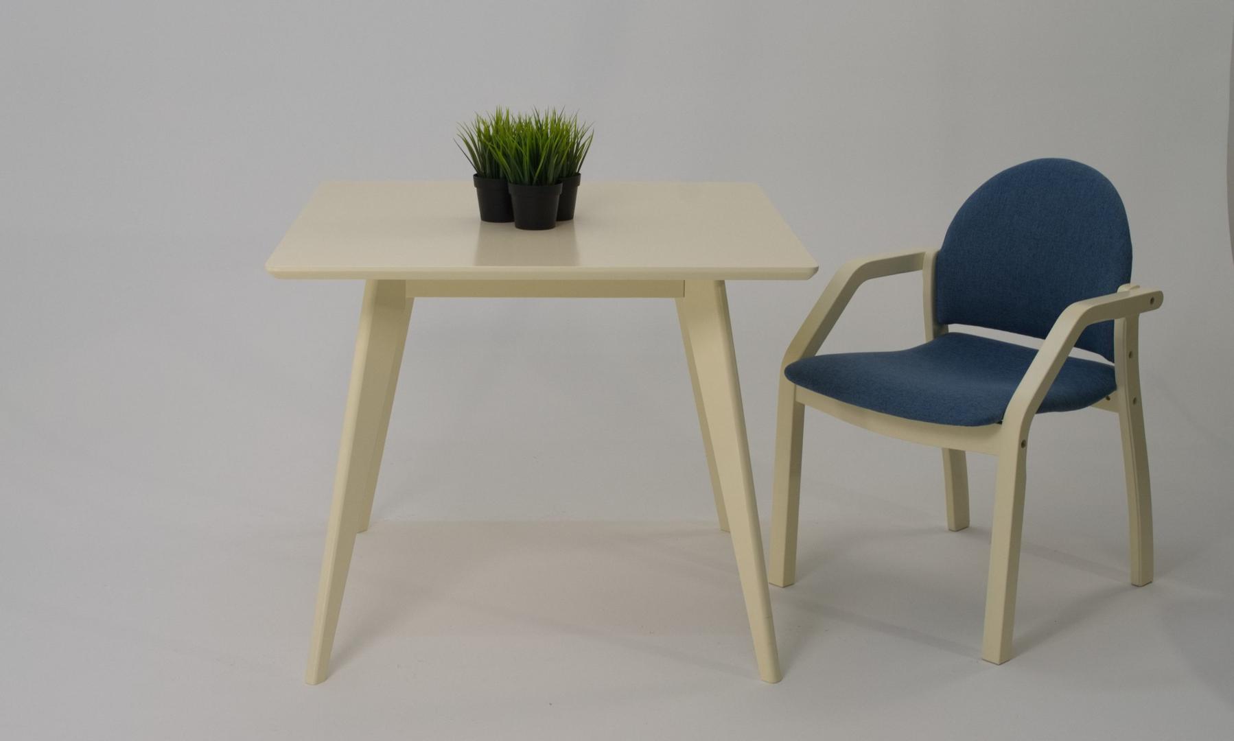 Стол ZiP-mebel Стол Сканди М 90 слоновая кость со стульями Джуно слоновая кость рогожка синий арт. F404118S00X2Z112805S03