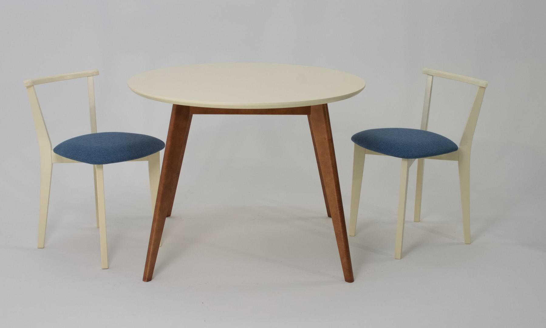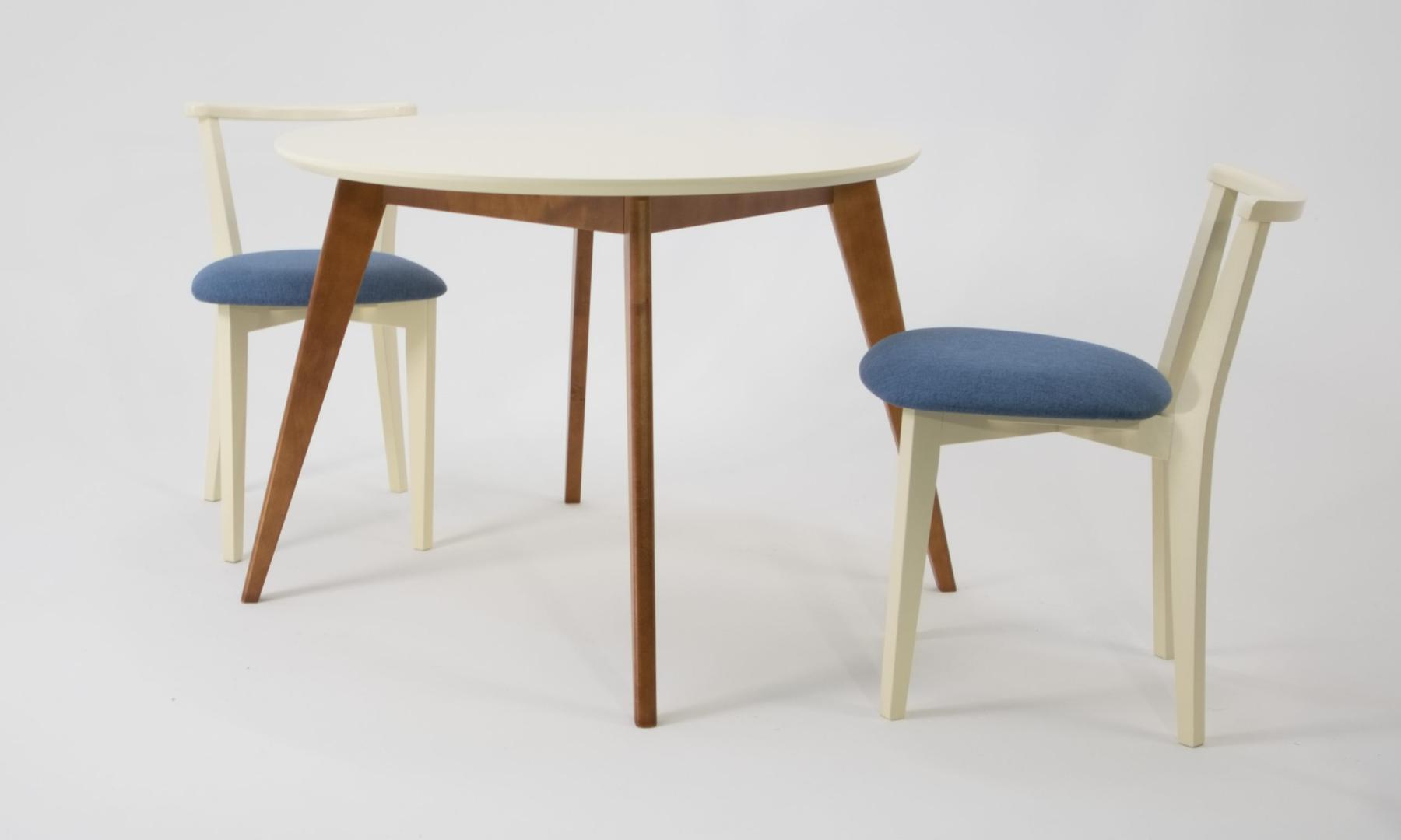 Комплект из деревянного стола Сканди на каркасе из натурального дерева и 2 стула Франк отлично подойдет к интерьеру, выдержанному в скандинавском стиле. Данный комплект станет центральным элементом в гостиной, столовой зоне, на кухне, позволив создать уютное обеденное место, где смогут собираться члены дружной семьи и их гости.У модели круглая форма столешницы. Такое решение исключит риск сколов и обеспечит безопасность, в том числе, детям.Комплект выполнен в красивой комбинации цветов - орех, слоновая кость. Сочетание изысканного дизайна и высокого качества исполнения - главная особенность комплекта.Столешница выполнена из материалов с великолепными эксплуатационными свойствами - МДФ (Материал создается на основе натуральной древесины. Практичен, надежен, имеет однородную гладкую структуру), шпон.Мебель проста в уходе - для поддержания первозданного вида достаточно использовать простую чуть влажную салфетку по мере необходимости.Состав комплекта:- стол F004111WUS- стулья R101709S03