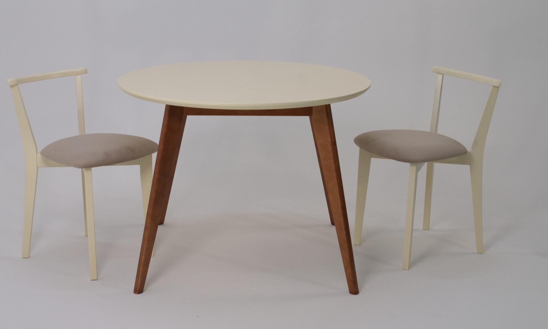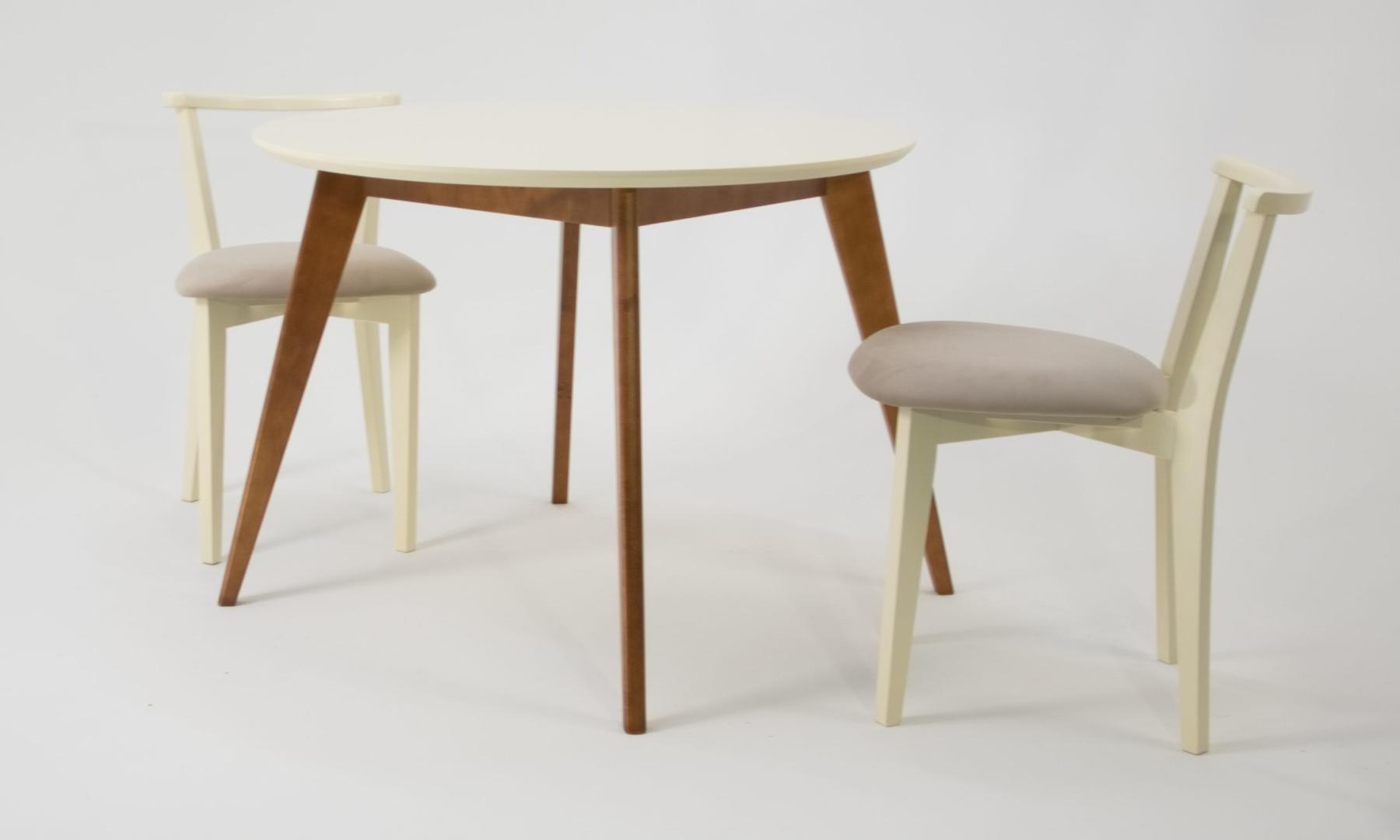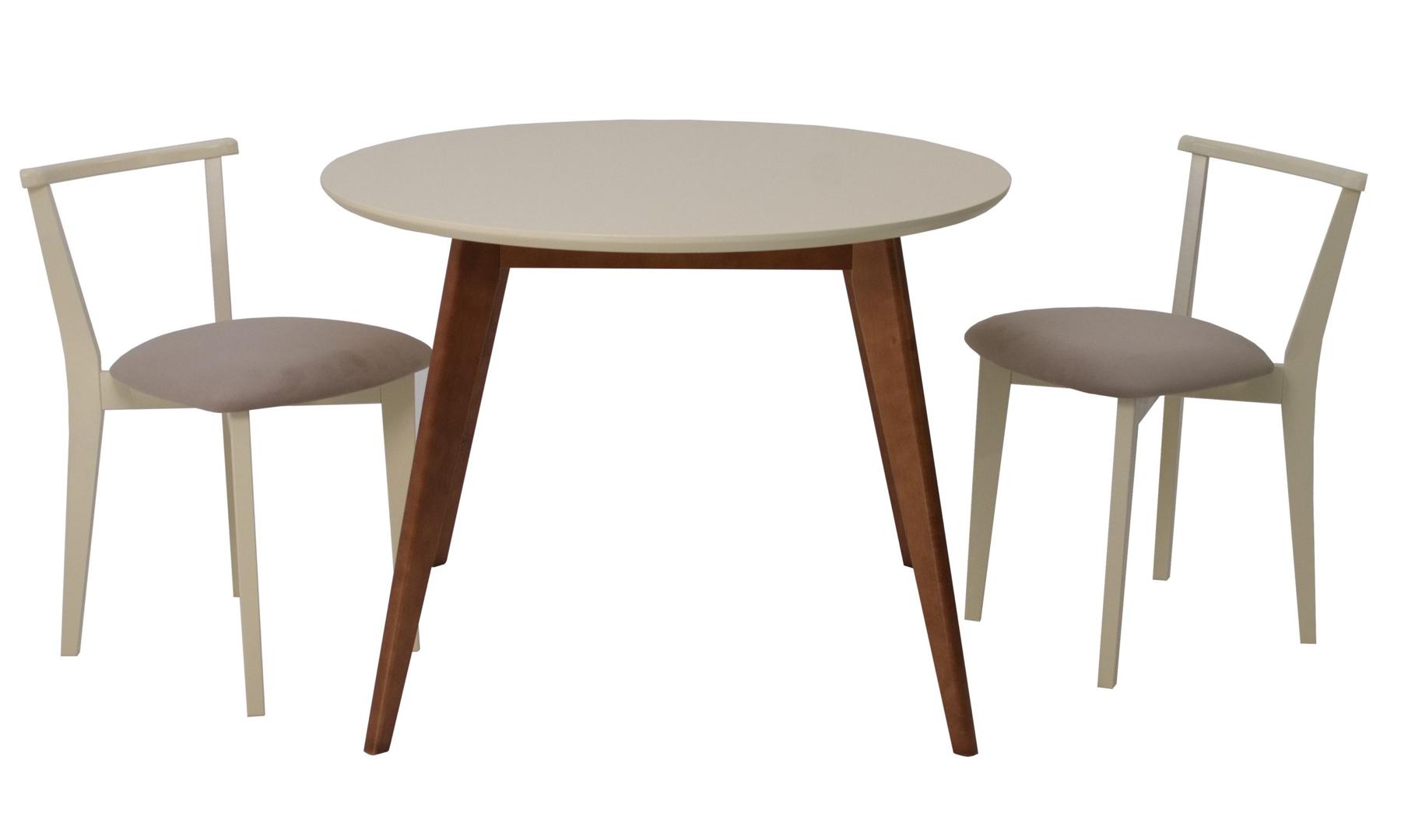 Комплект из деревянного стола Сканди на каркасе из натурального дерева и 2 стула Франк отлично подойдет к интерьеру, выдержанному в скандинавском стиле. Данный комплект станет центральным элементом в гостиной, столовой зоне, на кухне, позволив создать уютное обеденное место, где смогут собираться члены дружной семьи и их гости.У модели круглая форма столешницы. Такое решение исключит риск сколов и обеспечит безопасность, в том числе, детям.Комплект выполнен в красивой комбинации цветов - орех, слоновая кость. Сочетание изысканного дизайна и высокого качества исполнения - главная особенность комплекта.Столешница выполнена из материалов с великолепными эксплуатационными свойствами - МДФ (Материал создается на основе натуральной древесины. Практичен, надежен, имеет однородную гладкую структуру), шпон.Мебель проста в уходе - для поддержания первозданного вида достаточно использовать простую чуть влажную салфетку по мере необходимости.Состав комплекта:- стол F004111WUS- стулья R101709S02