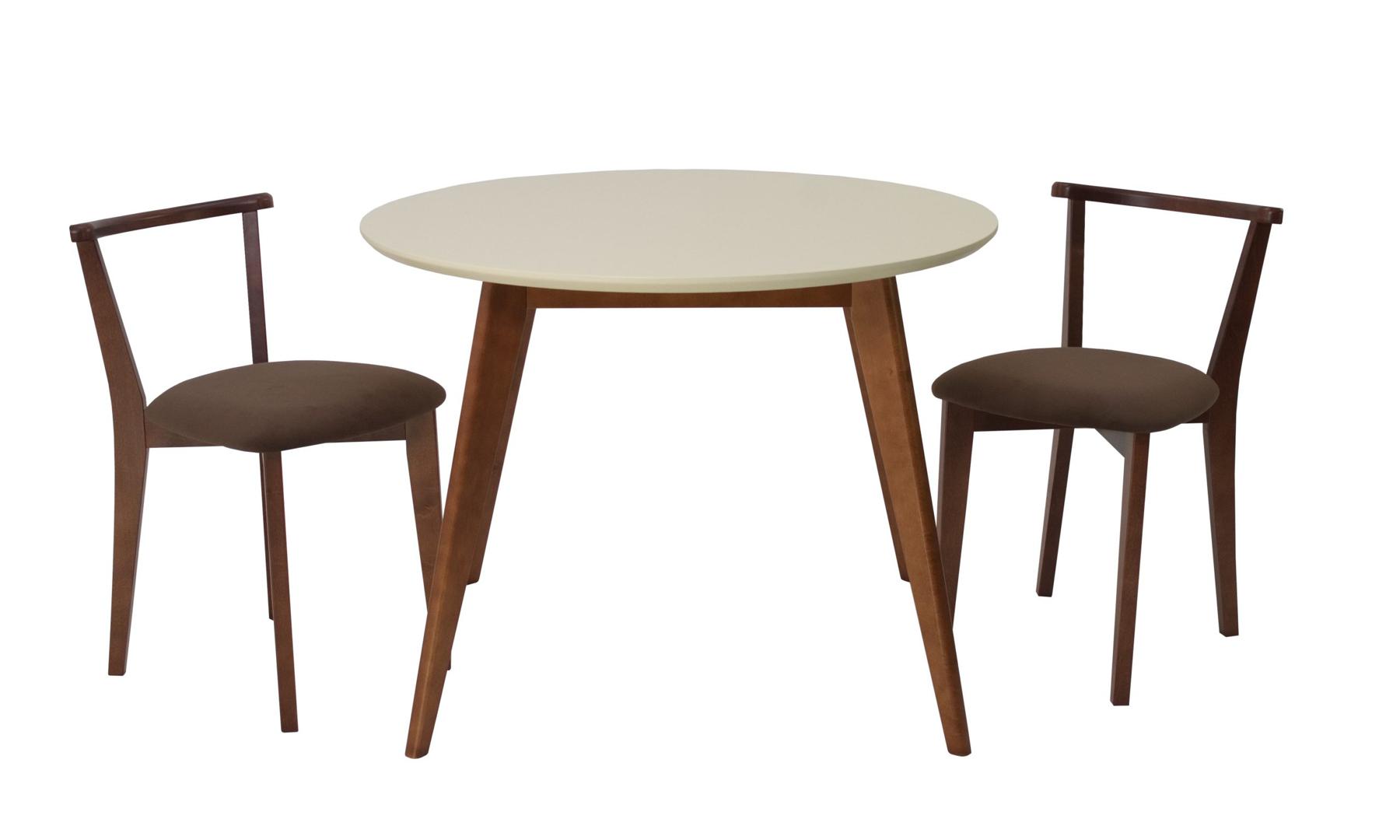 Комплект из деревянного стола Сканди на каркасе из натурального дерева и 2 стула Франк отлично подойдет к интерьеру, выдержанному в скандинавском стиле. Данный комплект станет центральным элементом в гостиной, столовой зоне, на кухне, позволив создать уютное обеденное место, где смогут собираться члены дружной семьи и их гости.У модели круглая форма столешницы. Такое решение исключит риск сколов и обеспечит безопасность, в том числе, детям.Комплект выполнен в красивой комбинации цветов - орех, слоновая кость. Сочетание изысканного дизайна и высокого качества исполнения - главная особенность комплекта.Столешница выполнена из материалов с великолепными эксплуатационными свойствами - МДФ (Материал создается на основе натуральной древесины. Практичен, надежен, имеет однородную гладкую структуру), шпон.Мебель проста в уходе - для поддержания первозданного вида достаточно использовать простую чуть влажную салфетку по мере необходимости.Состав комплекта:- стол F004111WUS- стулья R101706W04