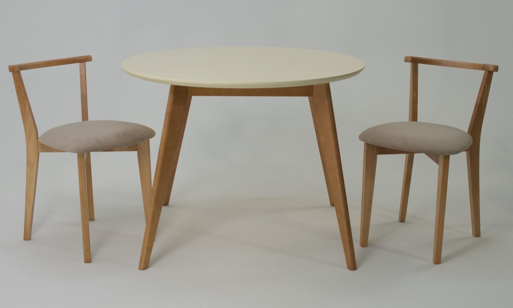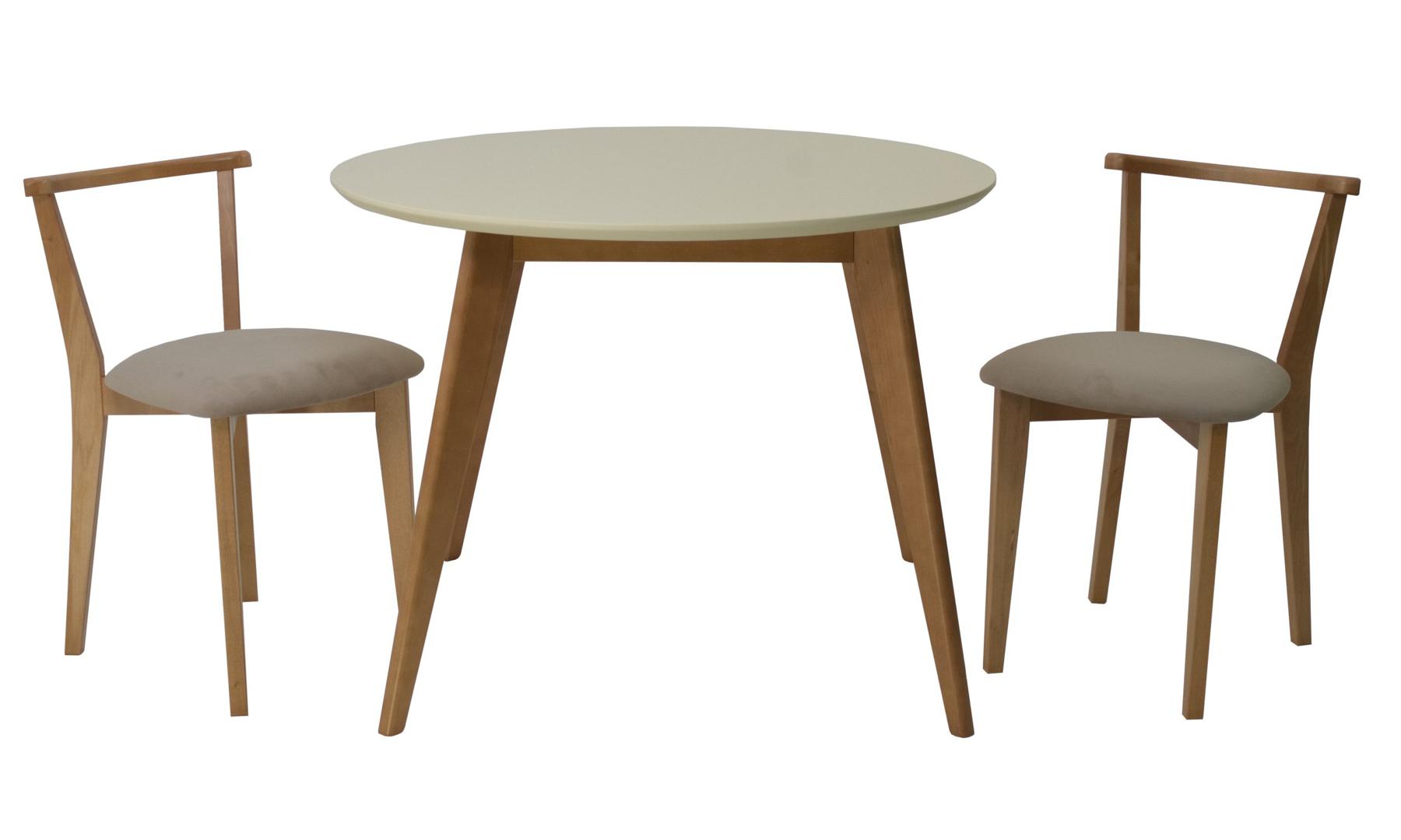 Стол ZiP-mebel Стол Сканди К 90 натур/слоновая кость со стульями Франк натур велюр бежевый арт. F004112NUSX2R101707N02
