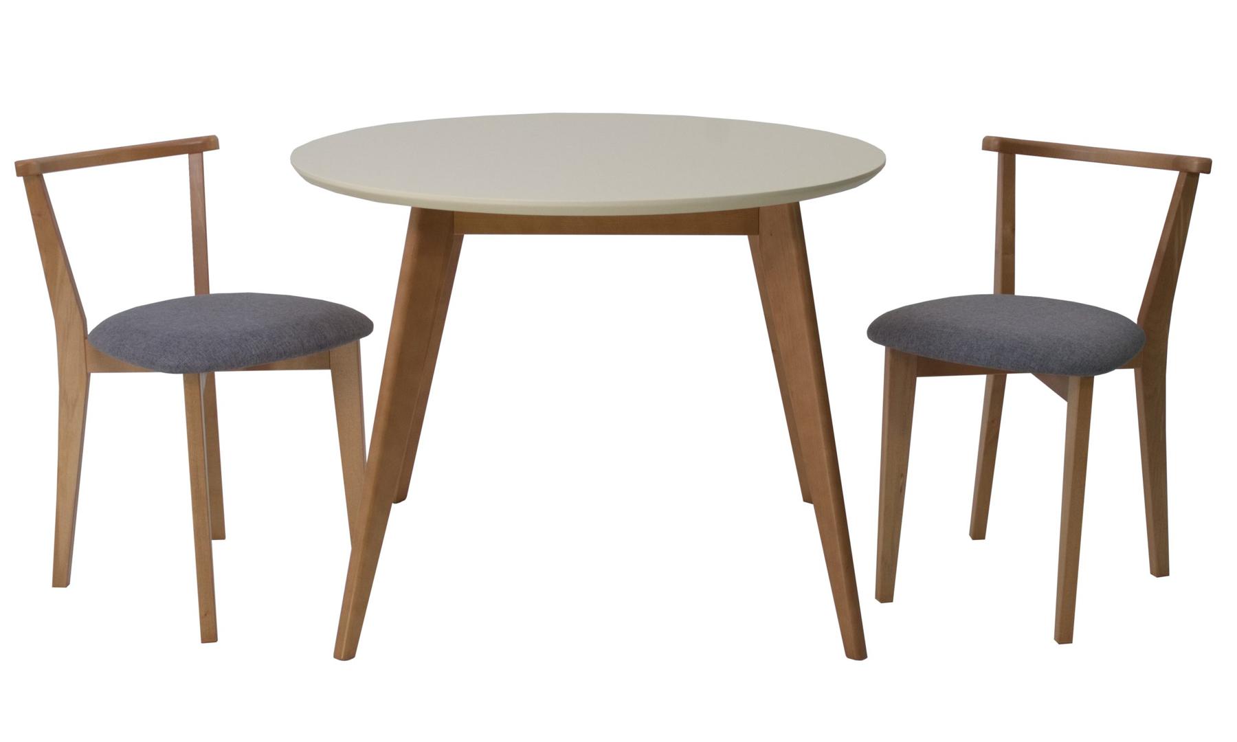 Стол ZiP-mebel Стол Сканди К 90 натур/слоновая кость со стульями Франк натур рогожка серый арт. F004112NUSX2R101707N01