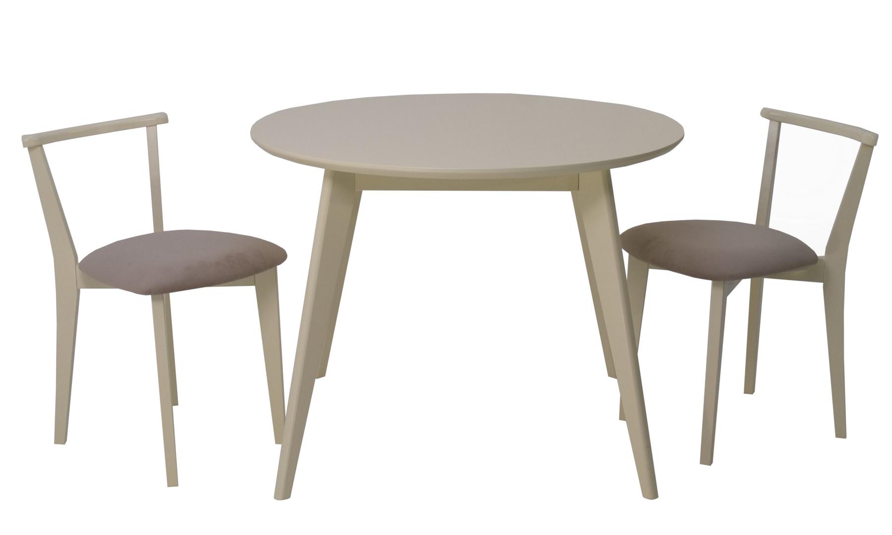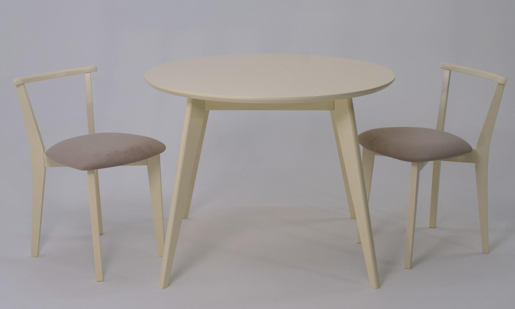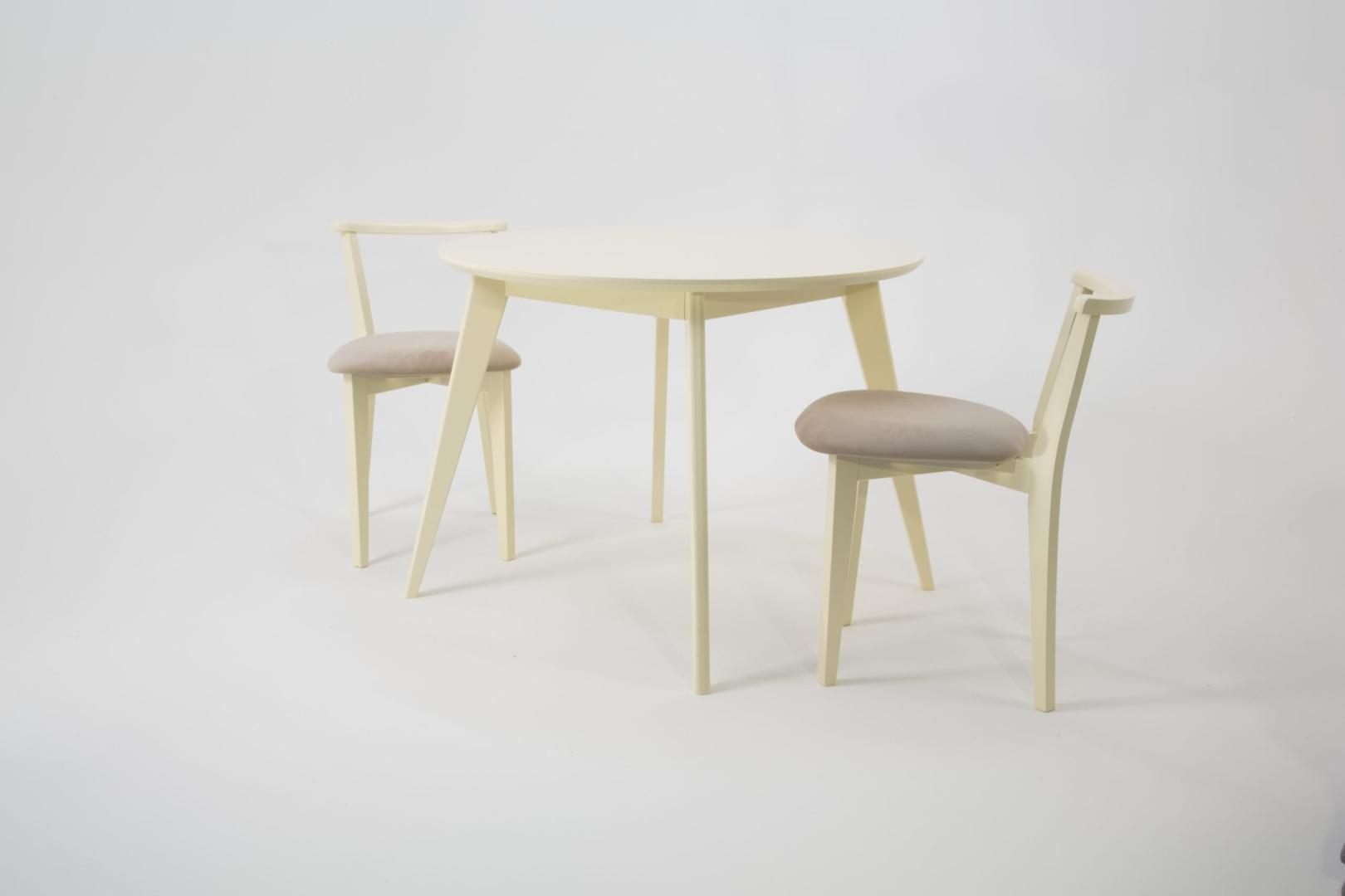 Комплект из деревянного стола Сканди на каркасе из натурального дерева и 2 стула Франк отлично подойдет к интерьеру, выдержанному в скандинавском стиле. Данный комплект станет центральным элементом в гостиной, столовой зоне, на кухне, позволив создать уютное обеденное место, где смогут собираться члены дружной семьи и их гости.У модели круглая форма столешницы. Такое решение исключит риск сколов и обеспечит безопасность, в том числе, детям.Комплект выполнен в красивом цвете - слоновая кость. Сочетание изысканного дизайна и высокого качества исполнения - главная особенность комплекта.Столешница выполнена из материалов с великолепными эксплуатационными свойствами - МДФ (Материал создается на основе натуральной древесины. Практичен, надежен, имеет однородную гладкую структуру), шпон.Мебель проста в уходе - для поддержания первозданного вида достаточно использовать простую чуть влажную салфетку по мере необходимости.Состав комплекта:- стол F004110S00- стулья R101709S02