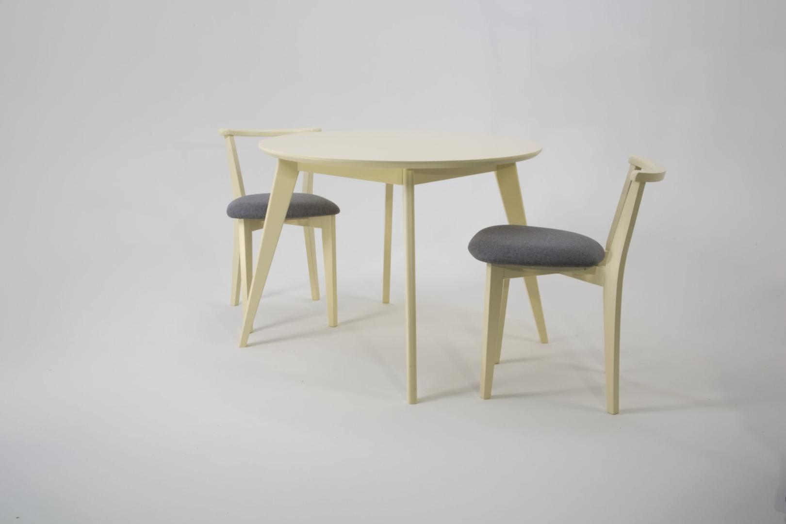 Комплект из деревянного стола Сканди на каркасе из натурального дерева и 2 стула Франк отлично подойдет к интерьеру, выдержанному в скандинавском стиле. Данный комплект станет центральным элементом в гостиной, столовой зоне, на кухне, позволив создать уютное обеденное место, где смогут собираться члены дружной семьи и их гости.У модели круглая форма столешницы. Такое решение исключит риск сколов и обеспечит безопасность, в том числе, детям.Комплект выполнен в красивом цвете - слоновая кость. Сочетание изысканного дизайна и высокого качества исполнения - главная особенность комплекта.Столешница выполнена из материалов с великолепными эксплуатационными свойствами - МДФ (Материал создается на основе натуральной древесины. Практичен, надежен, имеет однородную гладкую структуру), шпон.Мебель проста в уходе - для поддержания первозданного вида достаточно использовать простую чуть влажную салфетку по мере необходимости.Состав комплекта:- стол F004110S00- стулья R101709S01