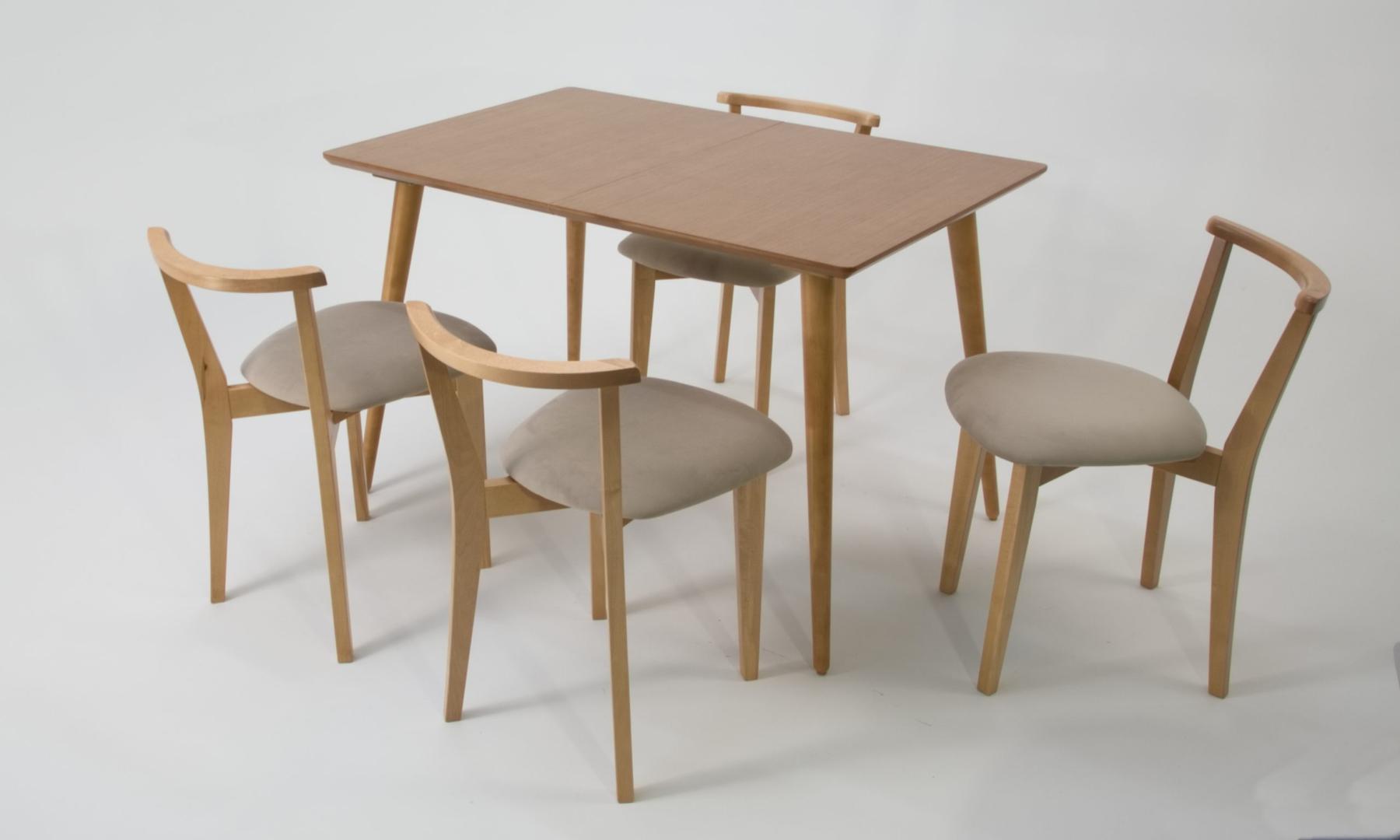 Стол ZiP-mebel Стол Монте 120 натур со стульями Франк натур велюр бежевый арт. F514136N00X4R100701N02