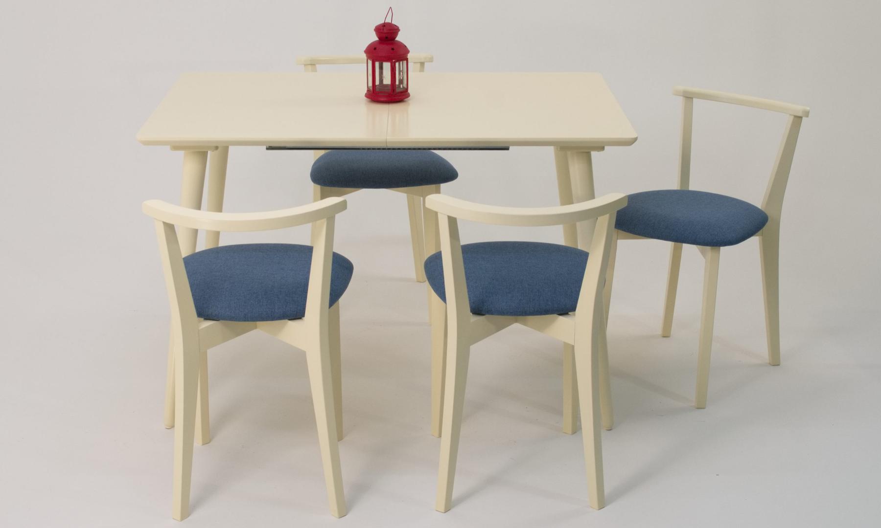 Стол ZiP-mebel Стол Монте 120 слоновая кость со стульями Франк слоновая кость рогожка синий арт. F514130S00X4R100709S03