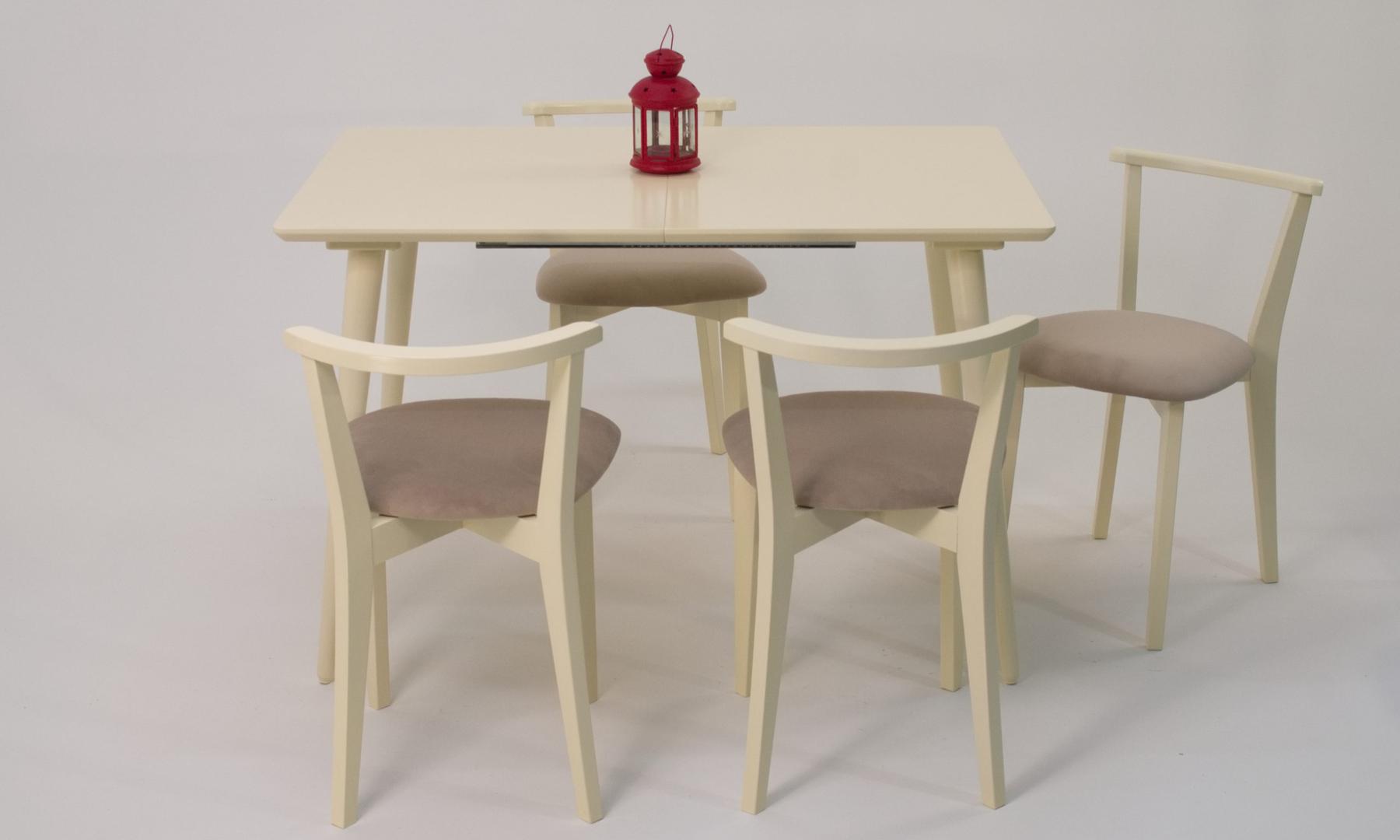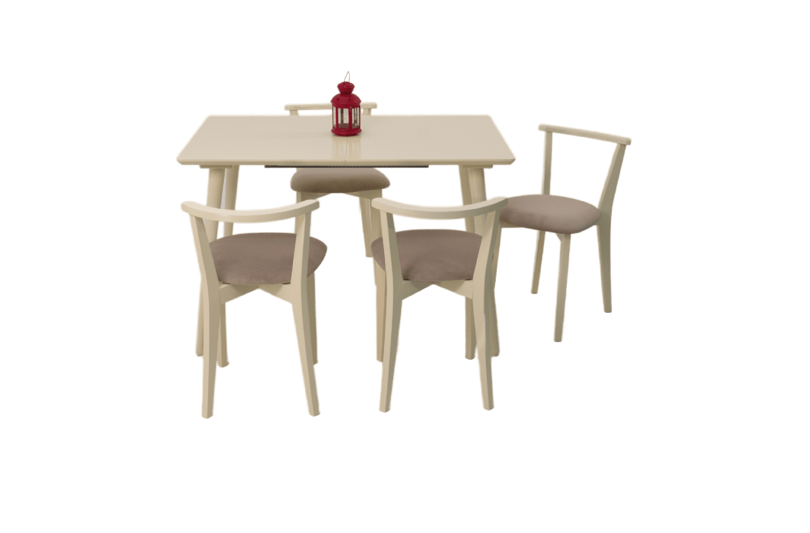 Стол ZiP-mebel Стол Монте 120 слоновая кость со стульями Франк слоновая кость велюр бежевый арт. F514130S00X4R100709S02