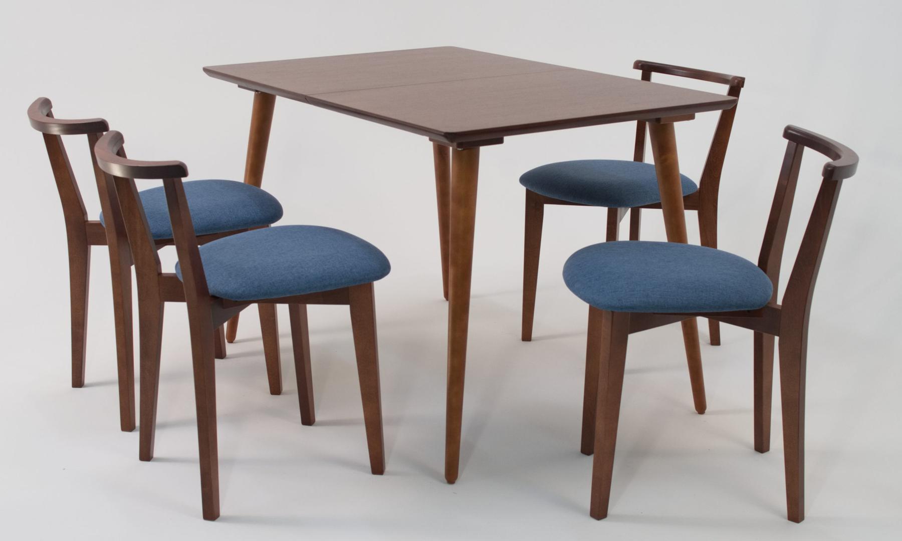 Стол ZiP-mebel Стол Монте 120 орех со стульями Франк Орех рогожка синий арт. F514135W00X4R101709W03