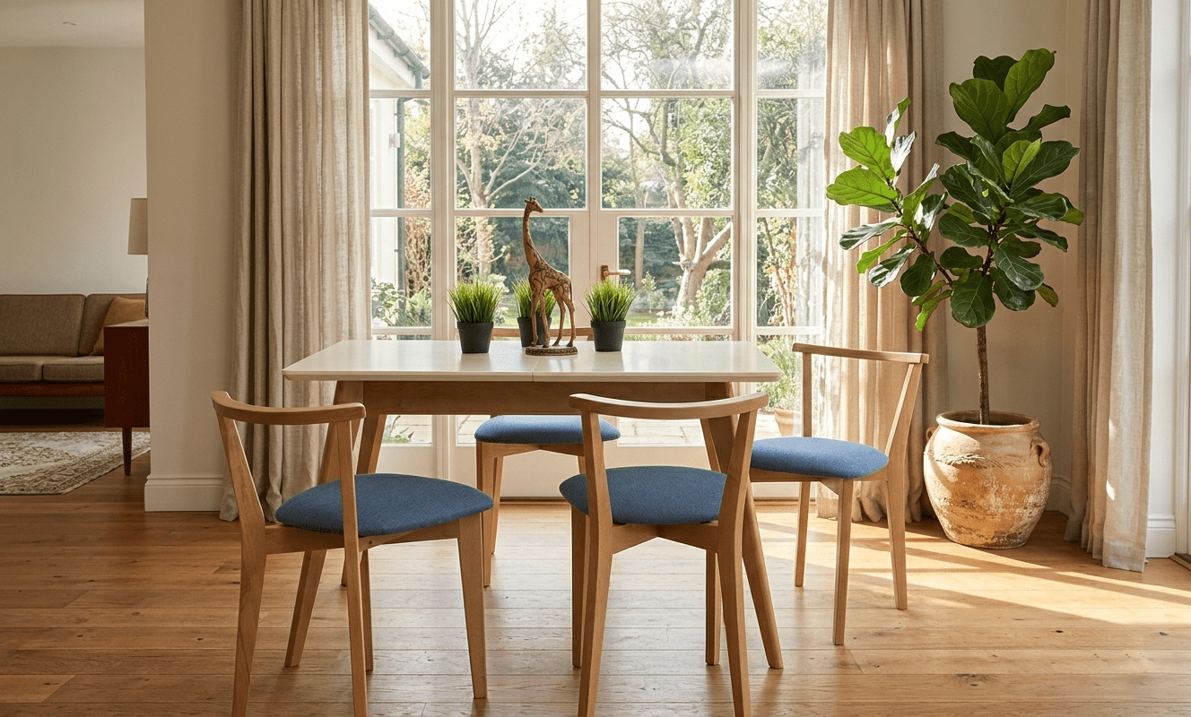 Комплект из деревянного стола Сканди на каркасе из натурального дерева и 4 стула Франк отлично подойдет к интерьеру, выдержанному в скандинавском стиле. Данный комплект станет центральным элементом в гостиной, столовой зоне, на кухне, позволив создать уютное обеденное место, где смогут собираться члены дружной семьи и их гости.У модели прямоугольная форма столешницы, со скруглением углов. Такое решение исключит риск сколов и обеспечит безопасность, в том числе, детям.Комплект выполнен в красивй комбинации цветов - натур и слоновая кость. Сочетание изысканного дизайна и высокого качества исполнения - главная особенность комплекта.Столешница выполнена из материалов с великолепными эксплуатационными свойствами - МДФ (Материал создается на основе натуральной древесины. Практичен, надежен, имеет однородную гладкую структуру), шпон.Мебель проста в уходе - для поддержания первозданного вида достаточно использовать простую чуть влажную салфетку по мере необходимости.Состав комплекта: Стол F514102NUS 120x80x75 и 4 стула R101707N03 44x53x73
