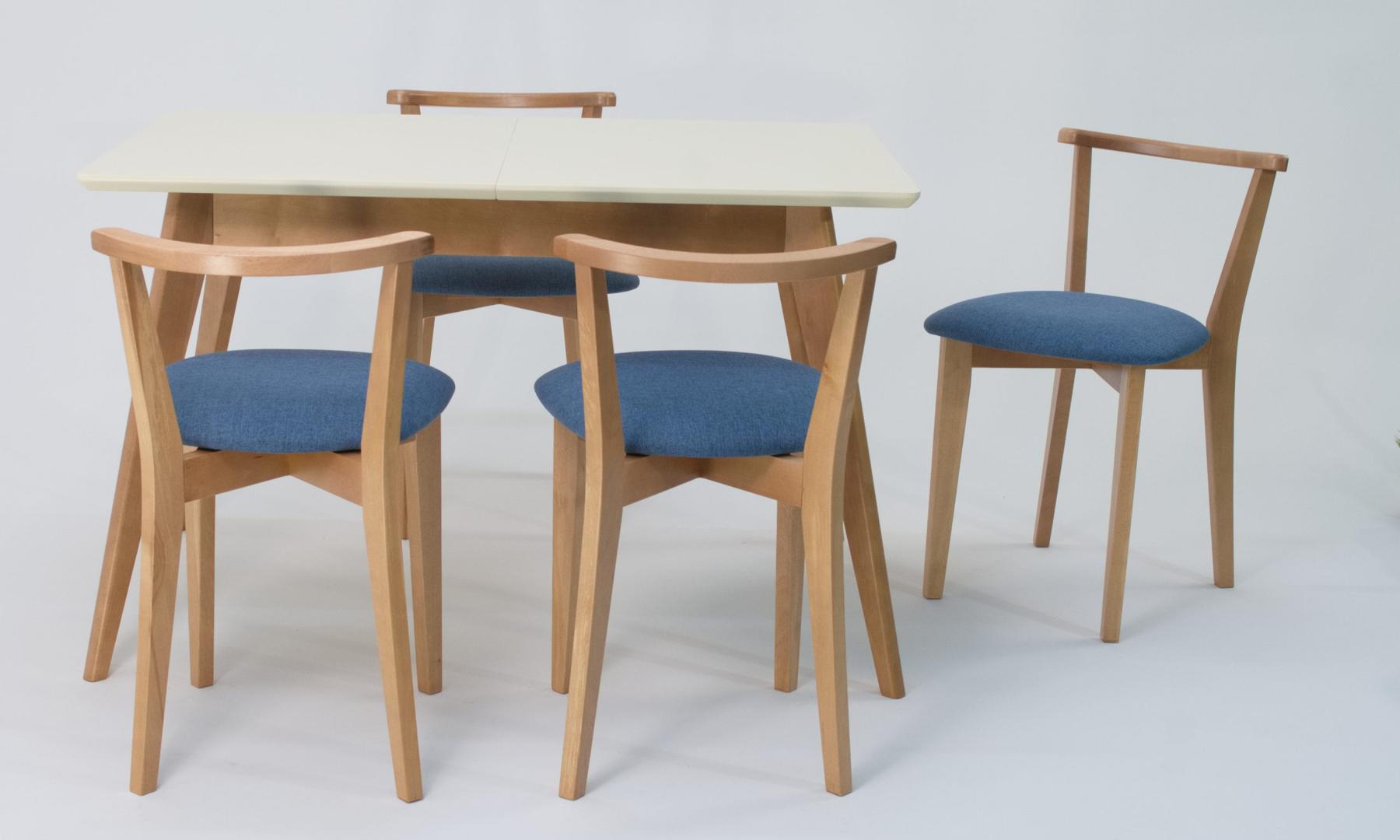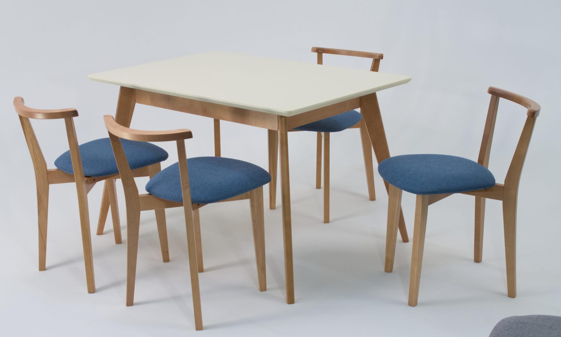Стол ZiP-mebel Стол Сканди 120 натур/слоновая кость со стульями Франк натур рогожка синий арт. F514102NUSX4R101707N03