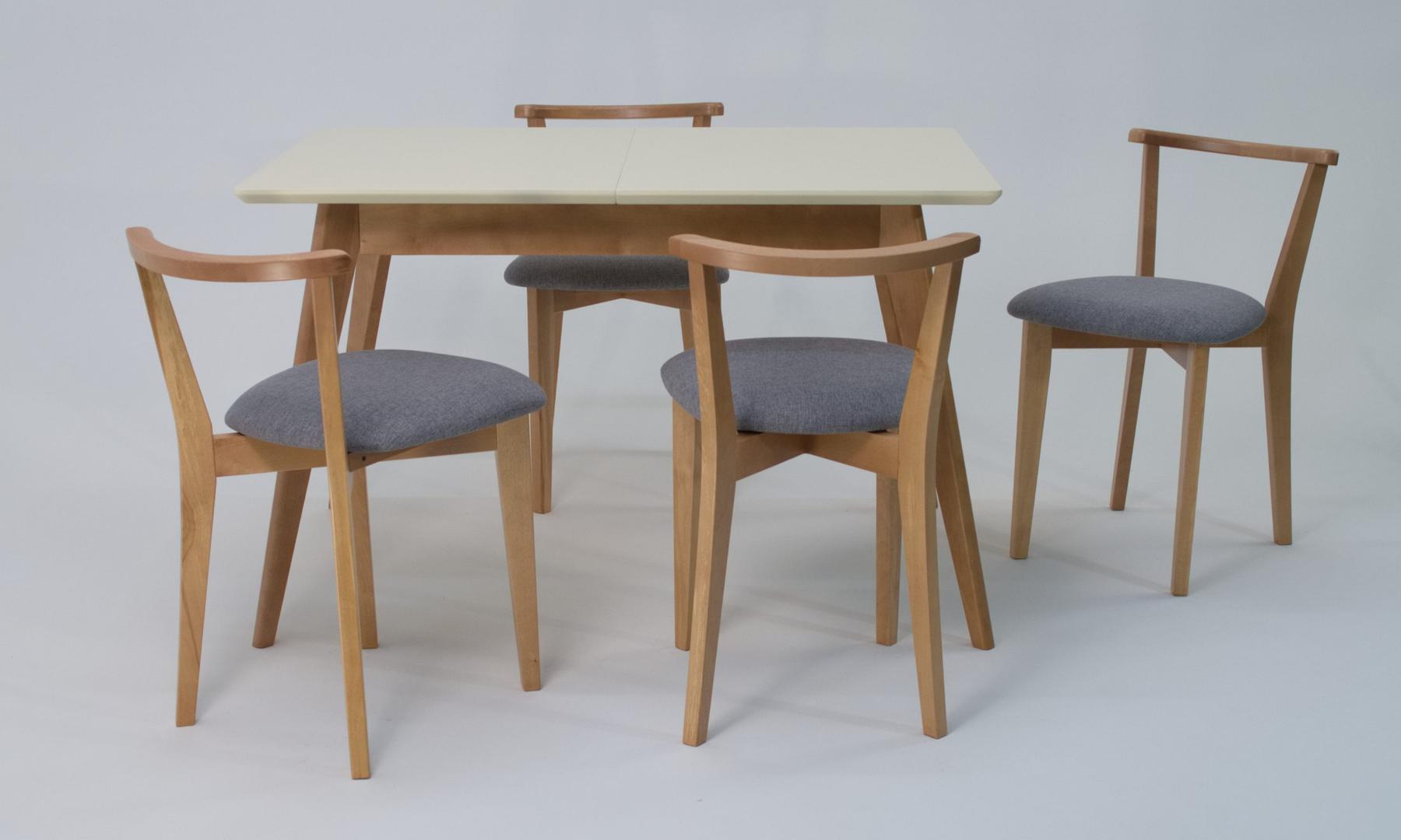 Стол ZiP-mebel Стол Сканди 120 натур/слоновая кость со стульями Франк натур рогожка серый арт. F514102NUSX4R101707N01