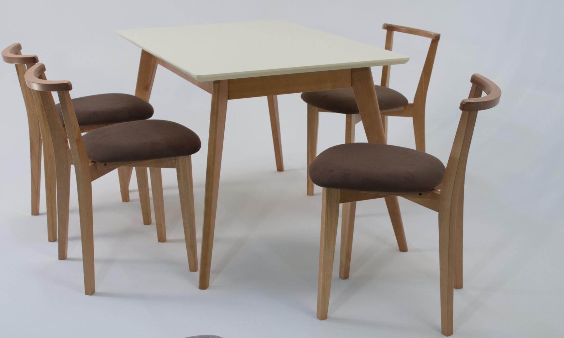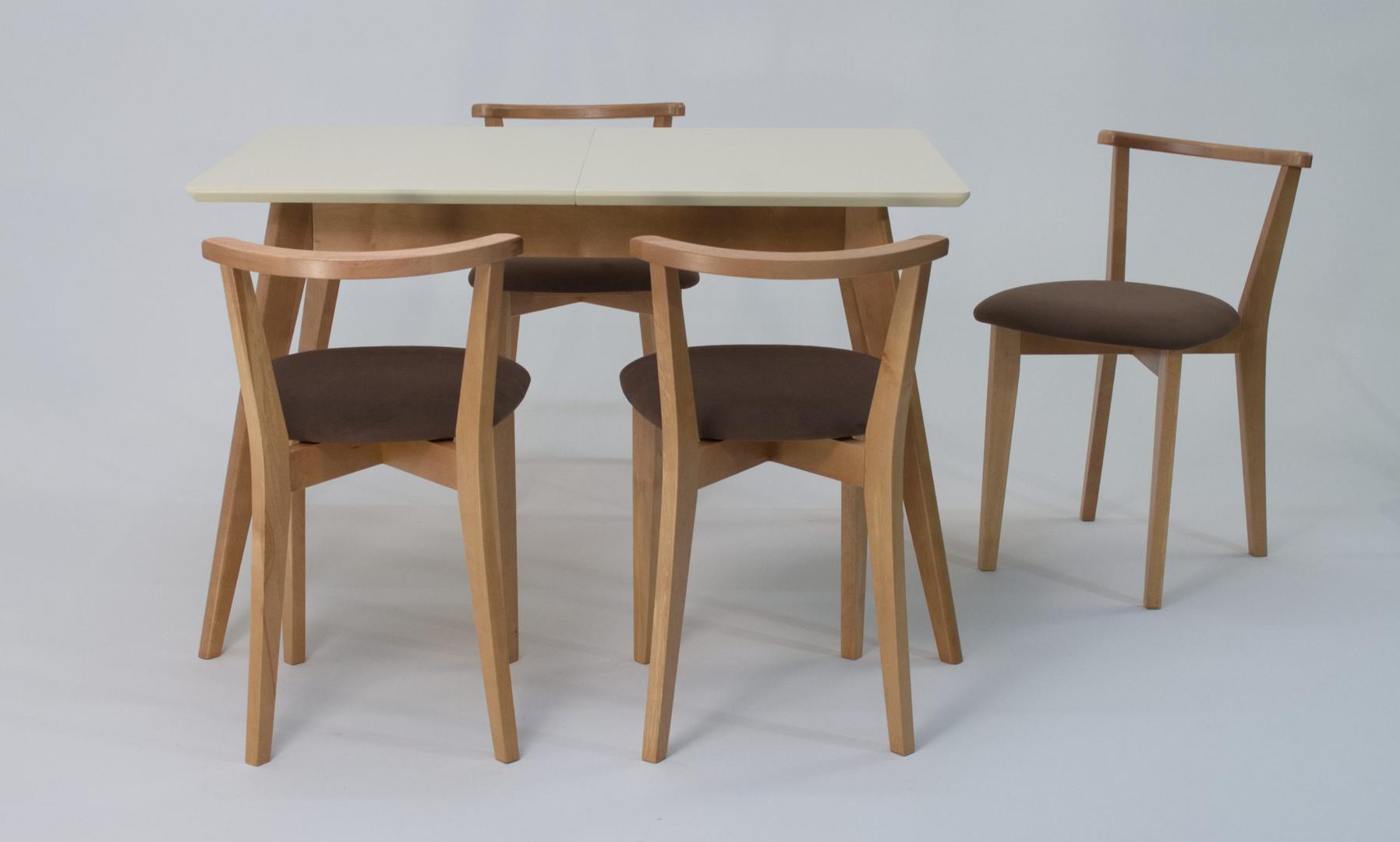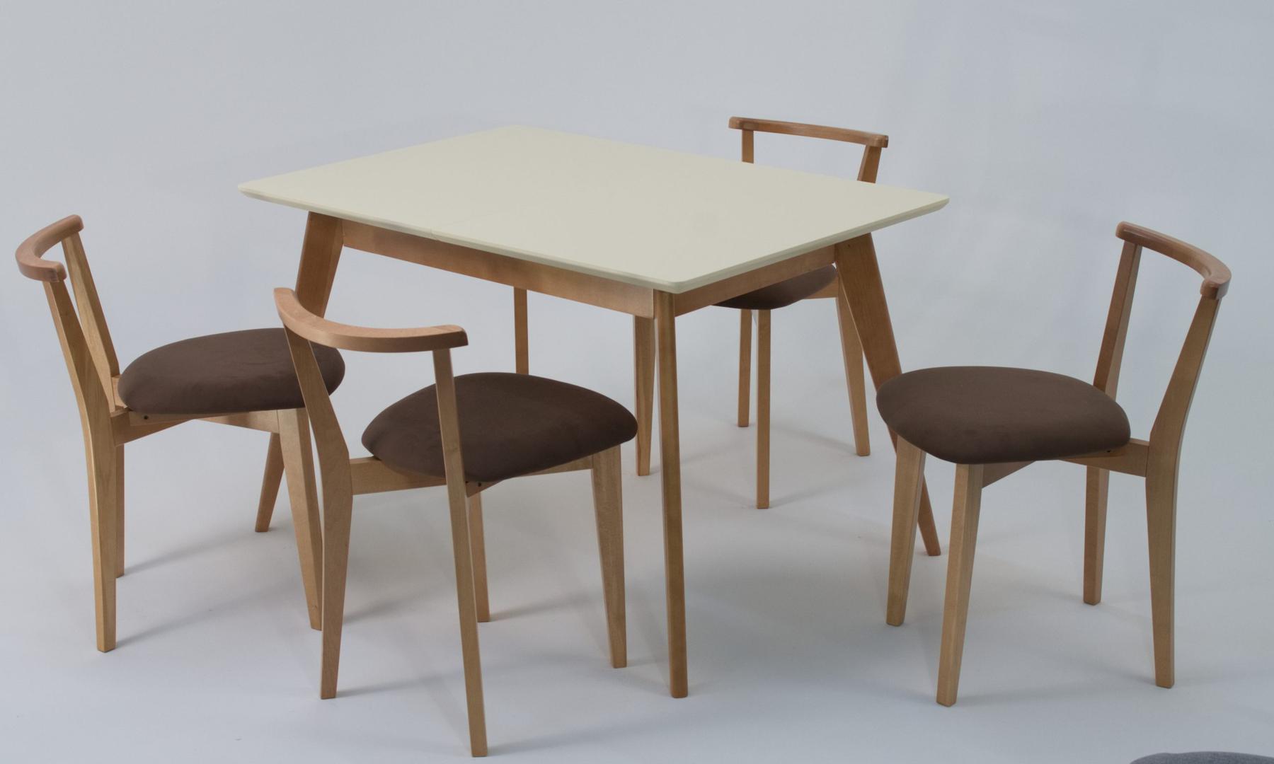 Стол ZiP-mebel Стол Сканди 120 натур/слоновая кость со стульями Франк натур велюр коричневый арт. F514102NUSX4R101707N04