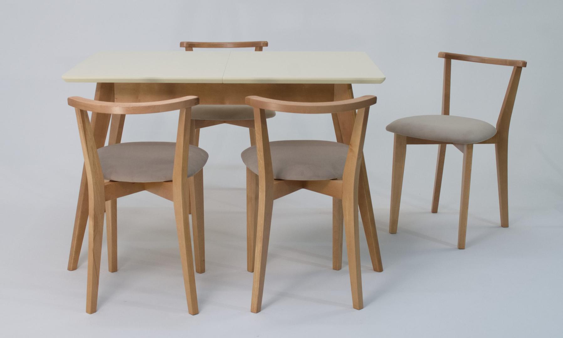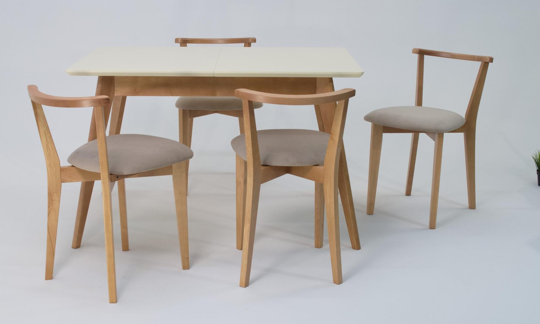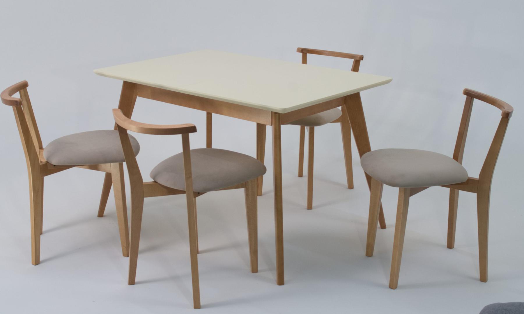 Стол ZiP-mebel Стол Сканди 120 натур/слоновая кость со стульями Франк натур велюр бежевый арт. F514102NUSX4R101707N02