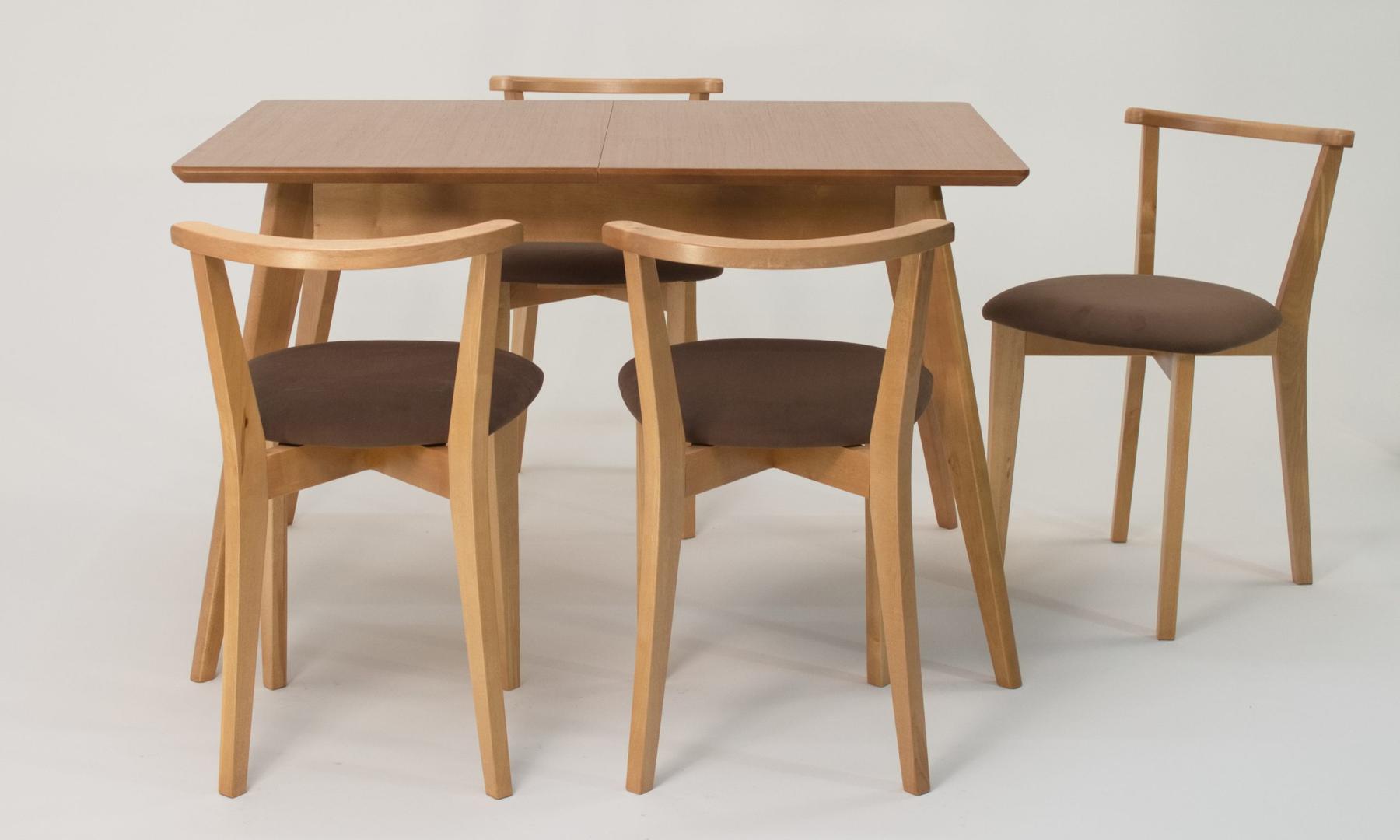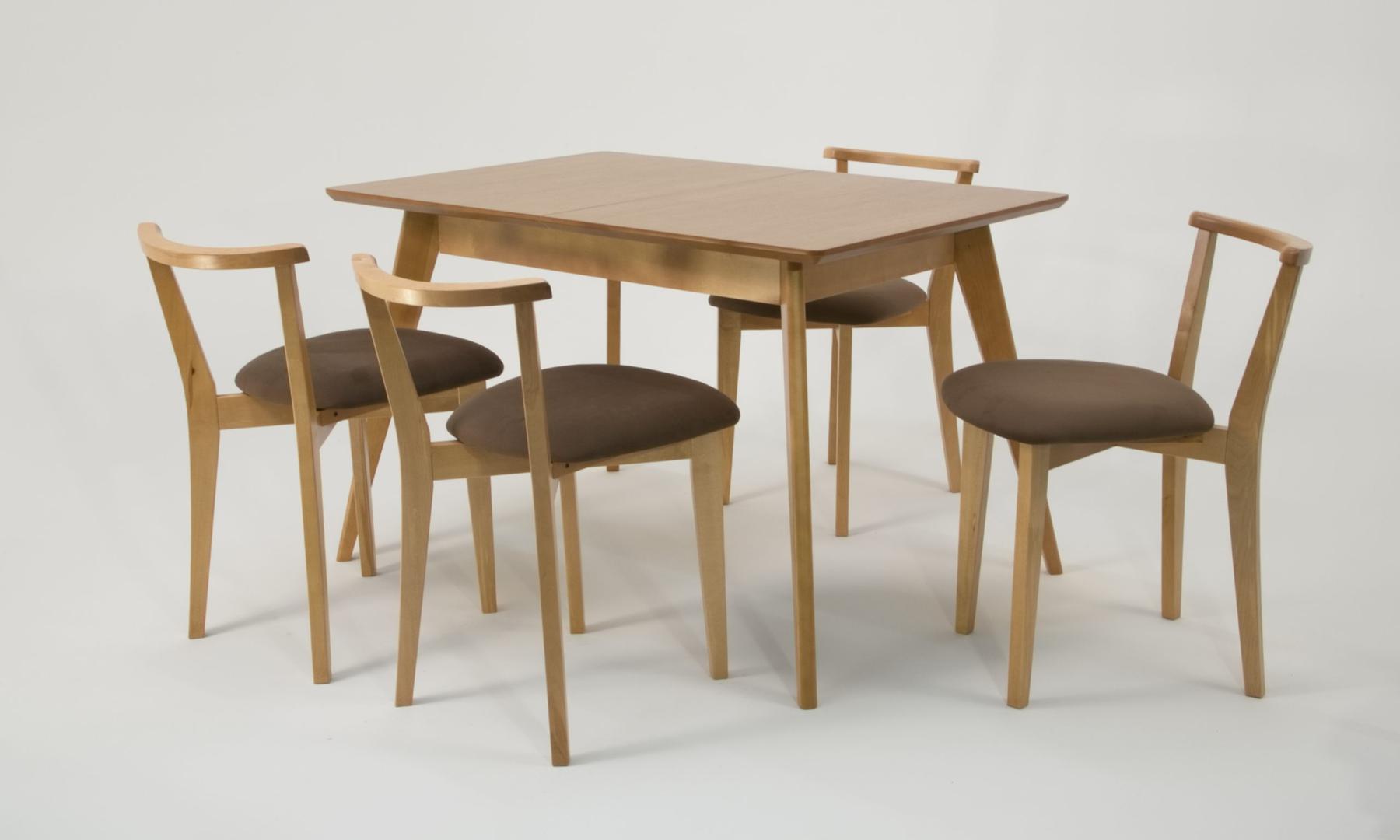 Стол ZiP-mebel Стол Сканди 120 натур со стульями Франк натур велюр коричневый арт. F514106N00X4R101707N04
