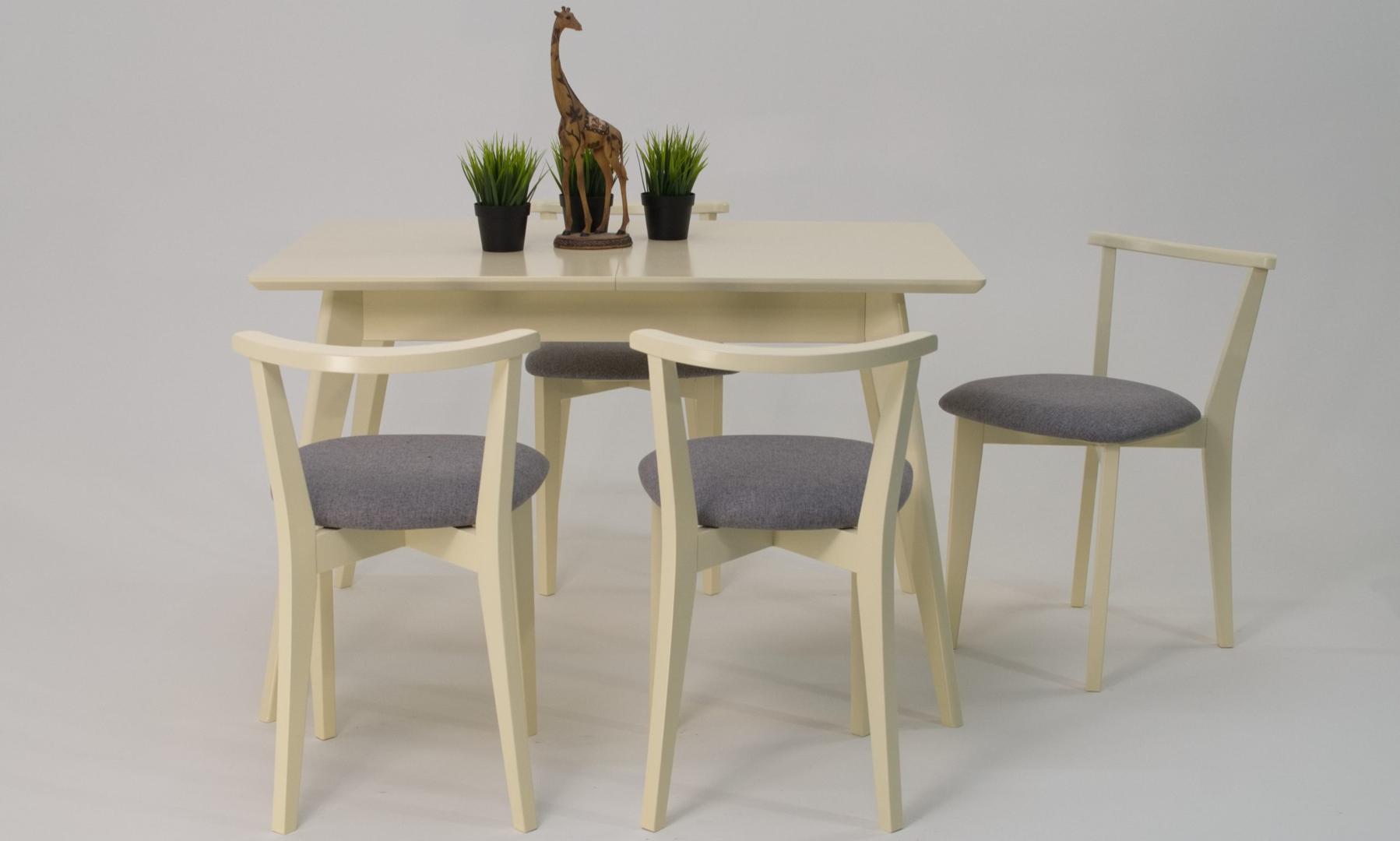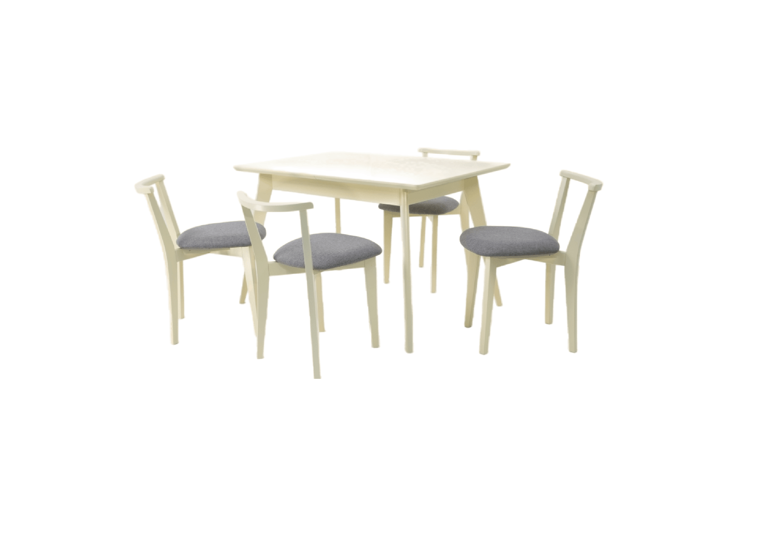 Комплект из деревянного стола Сканди на каркасе из натурального дерева и 4 стула Франк отлично подойдет к интерьеру, выдержанному в скандинавском стиле. Данный комплект станет центральным элементом в гостиной, столовой зоне, на кухне, позволив создать уютное обеденное место, где смогут собираться члены дружной семьи и их гости.У модели прямоугольная форма столешницы, со скруглением углов. Такое решение исключит риск сколов и обеспечит безопасность, в том числе, детям.Комплект выполнен в красивом цвете - слоновая кость. Сочетание изысканного дизайна и высокого качества исполнения - главная особенность комплекта.Столешница выполнена из материалов с великолепными эксплуатационными свойствами - МДФ (Материал создается на основе натуральной древесины. Практичен, надежен, имеет однородную гладкую структуру), шпон.Мебель проста в уходе - для поддержания первозданного вида достаточно использовать простую чуть влажную салфетку по мере необходимости.Состав комплекта: Стол F514100S00 120x80x75 и 4 стула R100709S01 44x53x73